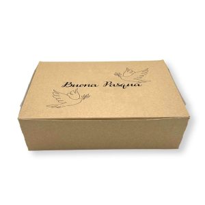 Contenitori in cartone per asporto pasquali 19.5×27.5 cm (25 pezzi) – Scrigno take away BUONA PASQUA Scatola cartone con coperchio