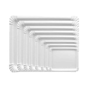 Vassoio rettangolare per dolci, pasticcini, pizzette, Vassoi di carta bianco varie misure, vassoi usa e getta per feste 10 kg