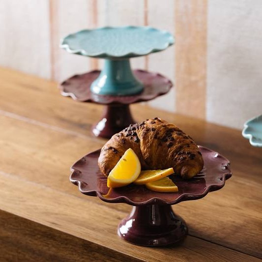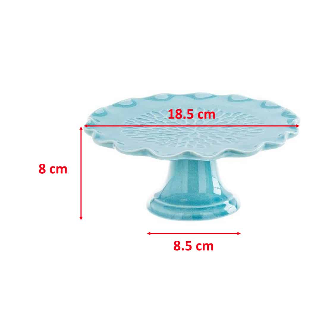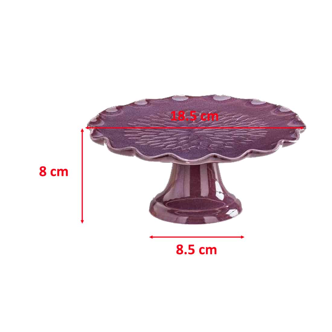 DIMENSIONI: L'alzatina cucina ha un diametro superiore, dove vengono appoggiate le pietanze o gli oggetti, di 18.5 cm, un'altezza di 8 cm, il diametro del gambo è di 8.5 cm. L'alzatina per torta è disponibile nella colorazione Porpora o Azzurra. I colori accessi della ceramica aggiungono un tocco di eleganza e stile all'alzata per torte, rendendola un elemento decorativo in sé.
