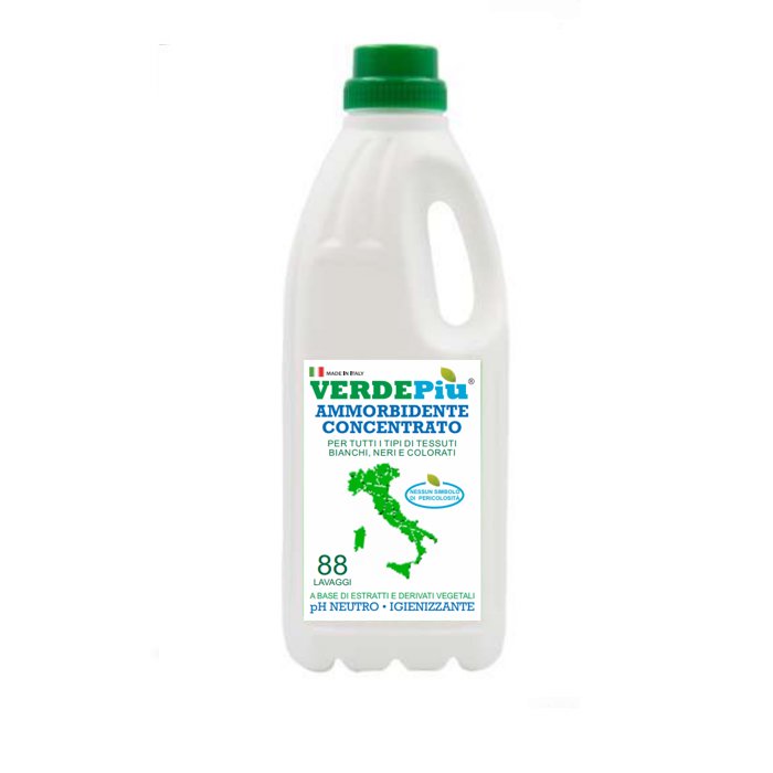 Ammorbidente liquido concentrato bio per tutti i tipi di tessuti bianchi, neri e colorati della Verdepiù