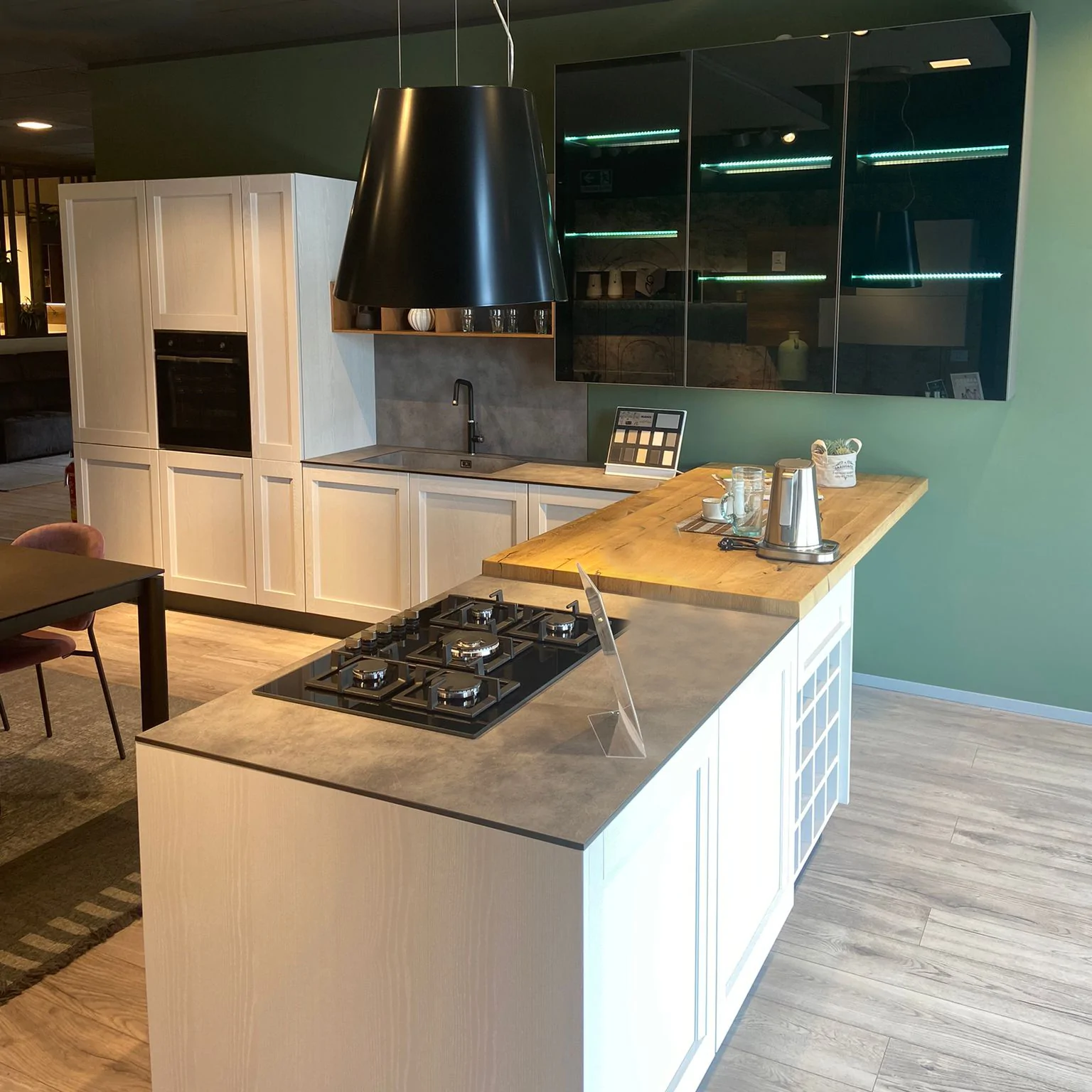 CUCINA ARREDO3 FRIDA MODERN ANTA GESSO DECAPE, SENZA MANIGLIA E SENZA FORO , ZOCCOLO IN ALLUMINIO FINITURA TITANIO – TOP HPL SP. 1