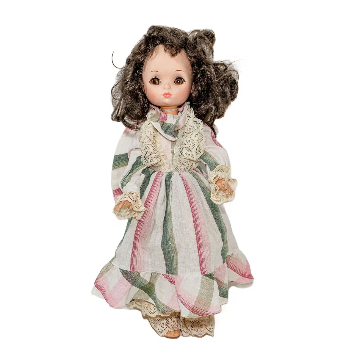 Graziosa bambola Furga “damina” vintage, perfetta per collezionisti e appassionati di bambole d’epoca. Indossa il suo vestito originale, anche se priva di scarpine. Il viso e le mani sono in ottime condizioni, mentre i capelli risultano leggermente arruffati, caratteristica comune per una bambola di questa età. Realizzata con materiali di qualità, rappresenta un autentico pezzo di storia del giocattolo italiano.