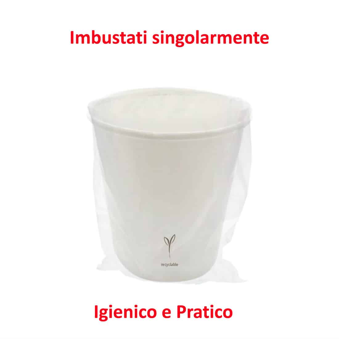 IMBUSTATO SINGOLARMENTE: Ogni bicchiere carta bianco è confezionato individualmente in una busta trasparente. Questo tipo di imballaggio serve a mantenere il bicchiere pulito e protetto da eventuali contaminazioni prima dell’uso. L’imbustamento singolo è particolarmente utile in contesti in cui l’igiene è una priorità, come catering, eventi, picnic o luoghi pubblici. I bicchieri carta grandi possono essere distribuiti in modo rapido e senza il rischio di contaminazioni.