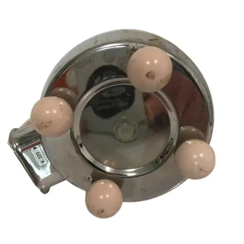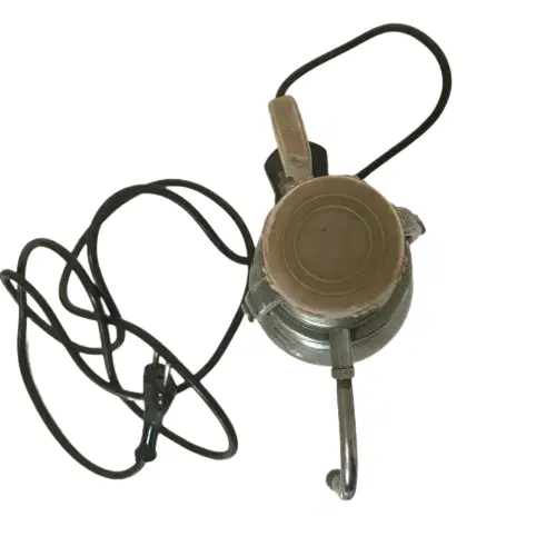- Condizioni: Funzionante e capace di accendersi e riscaldarsi, è consigliata soprattutto come pezzo da collezione, vista la sua età e l’usura evidente, come il manico rotto visibile nelle foto.