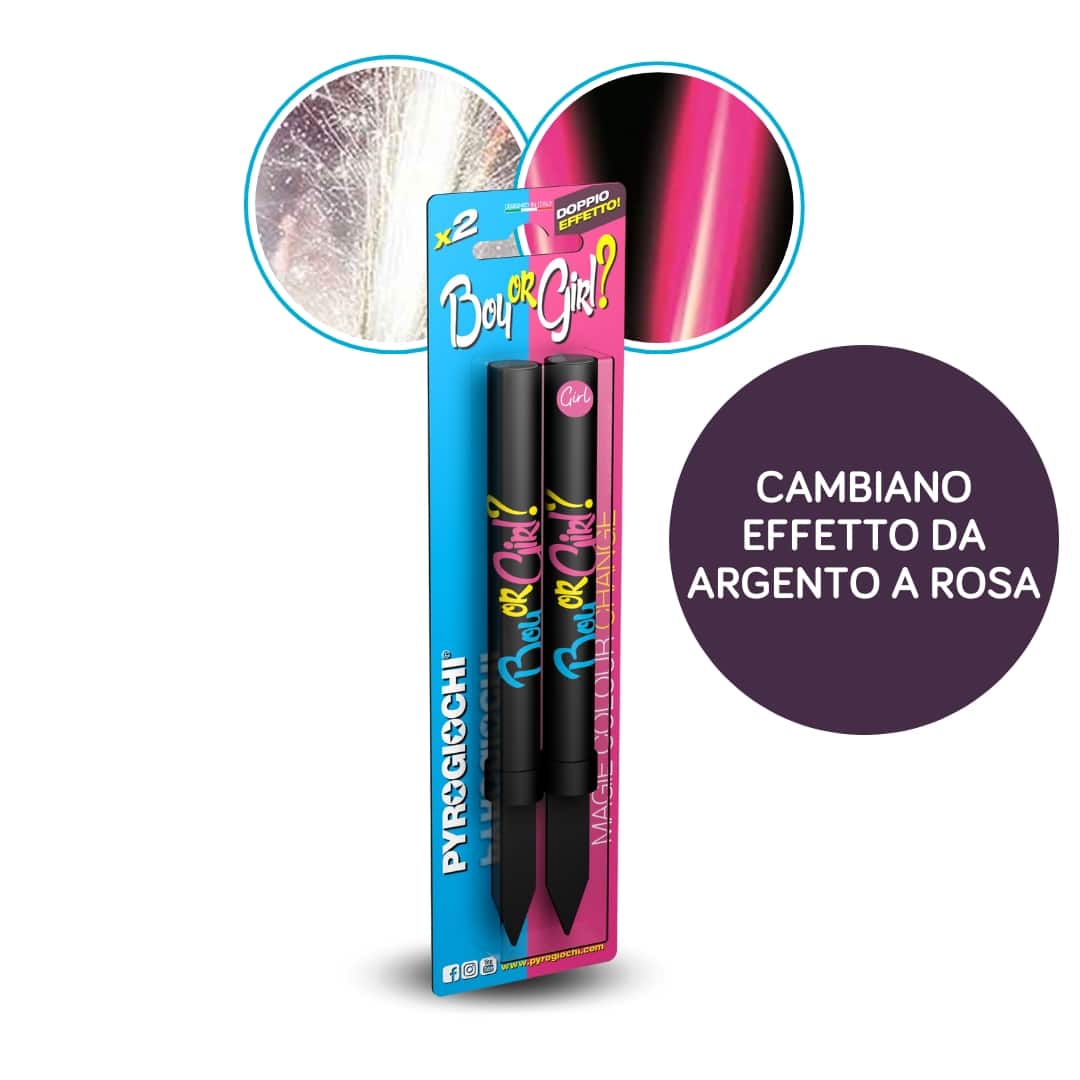 - Effetto sorpresa: scintille colorate che rivelano il genere del bambino.