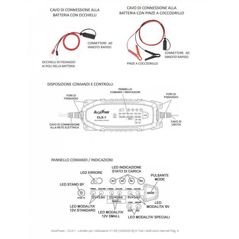Caricabatterie auto Smart CLX-1 alcapower 3,8A batterie Piombo 6V, 12V e LiFePO4 12,8V
