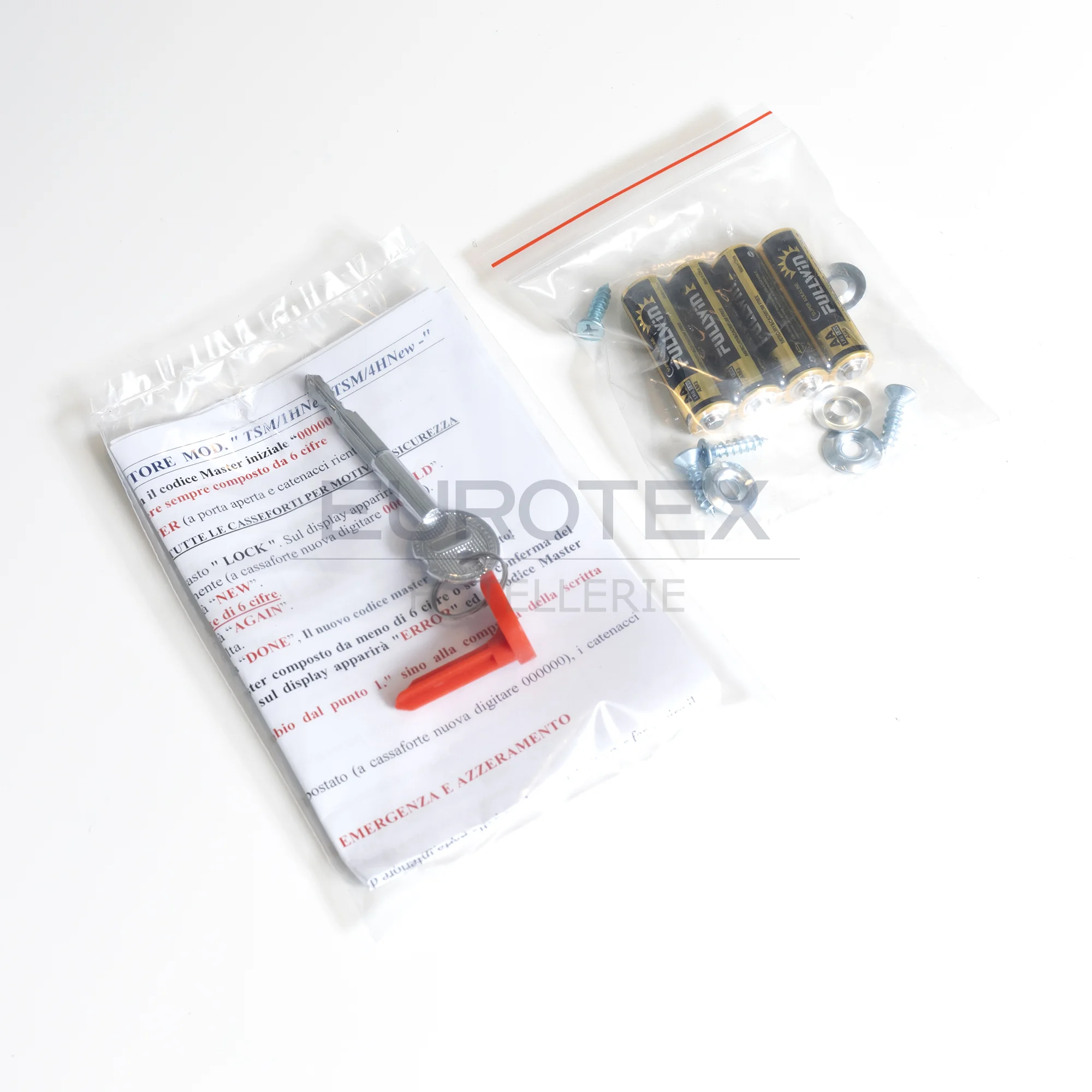 Nel caso i cui l’ospite dimentichi la combinazione, il sistema dispone di un codice master utile per l’apertura di emergenza da parte dell’albergatore e di una serratura a chiave per l’apertura di emergenza (identica per tutte le casseforti dell’hotel).