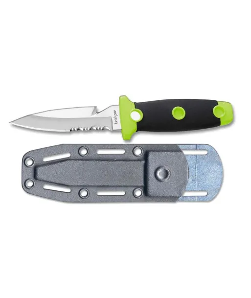 Il manico in materiale sintetico nero lucido e giallo fosforescente visibile anche sotto l’ acqua.