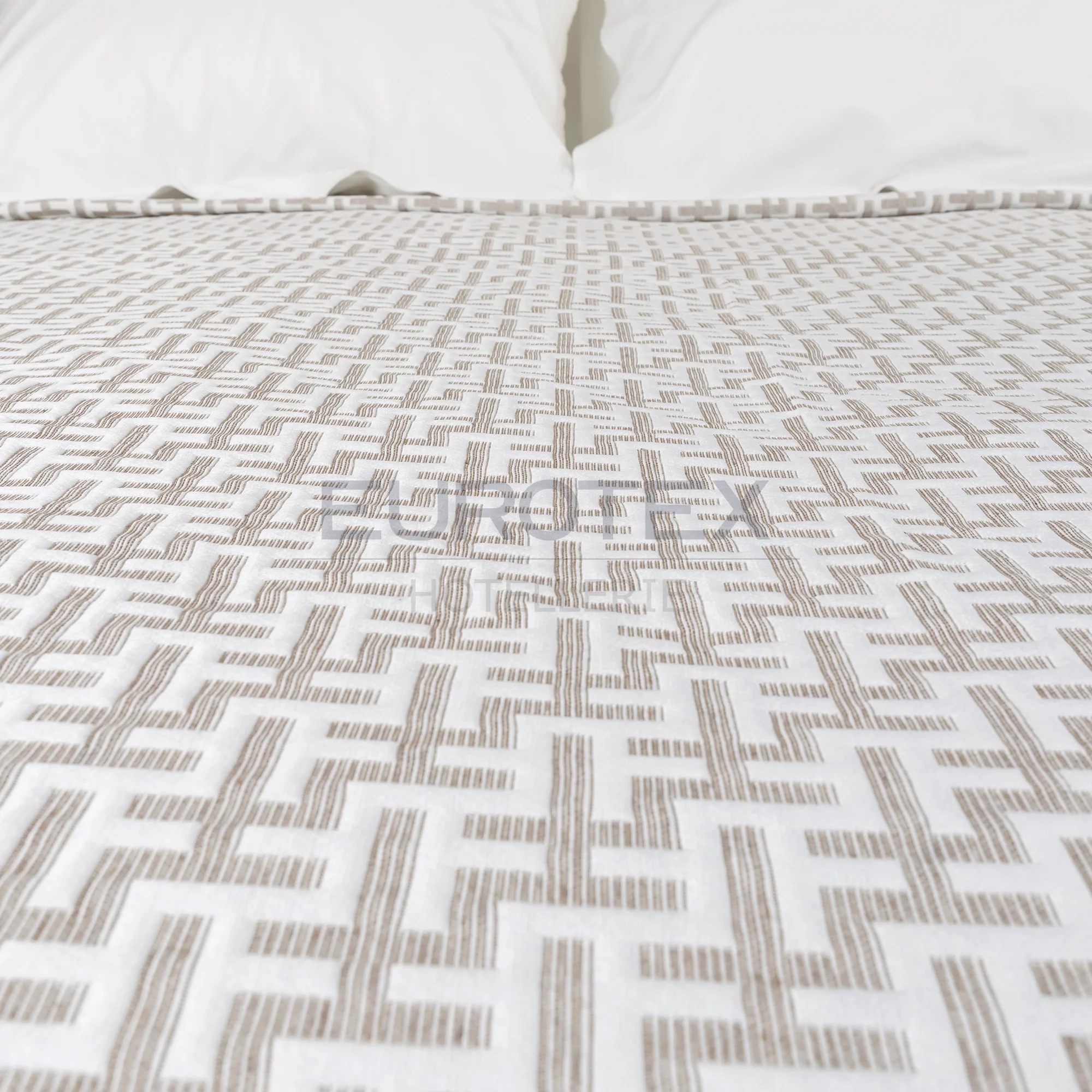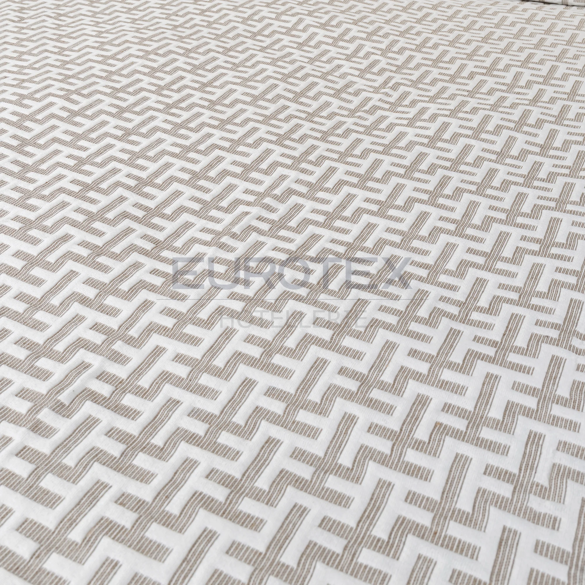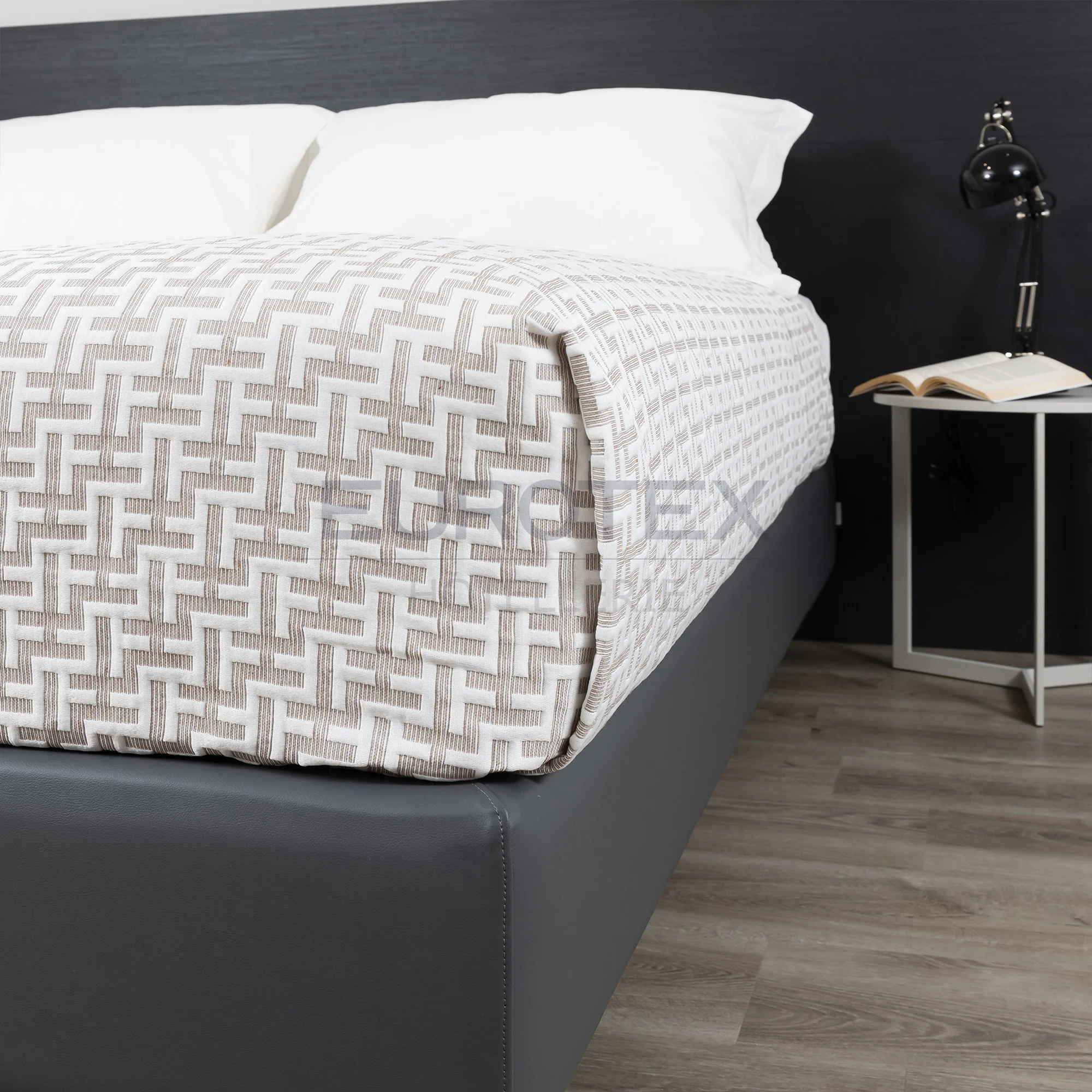 Copriletto in misto cotone dalla fantasia innovativa e allo stesso tempo elegante. Un tocco di modernità per rinnovare le camere nella stagione estiva. Ideale per le strutture ricettive. Resistente a frequenti lavaggi, il particolare disegno nasconde macchie e usura. Disponibile in due varianti colore che si adattano facilmente ad ogni ambiente.