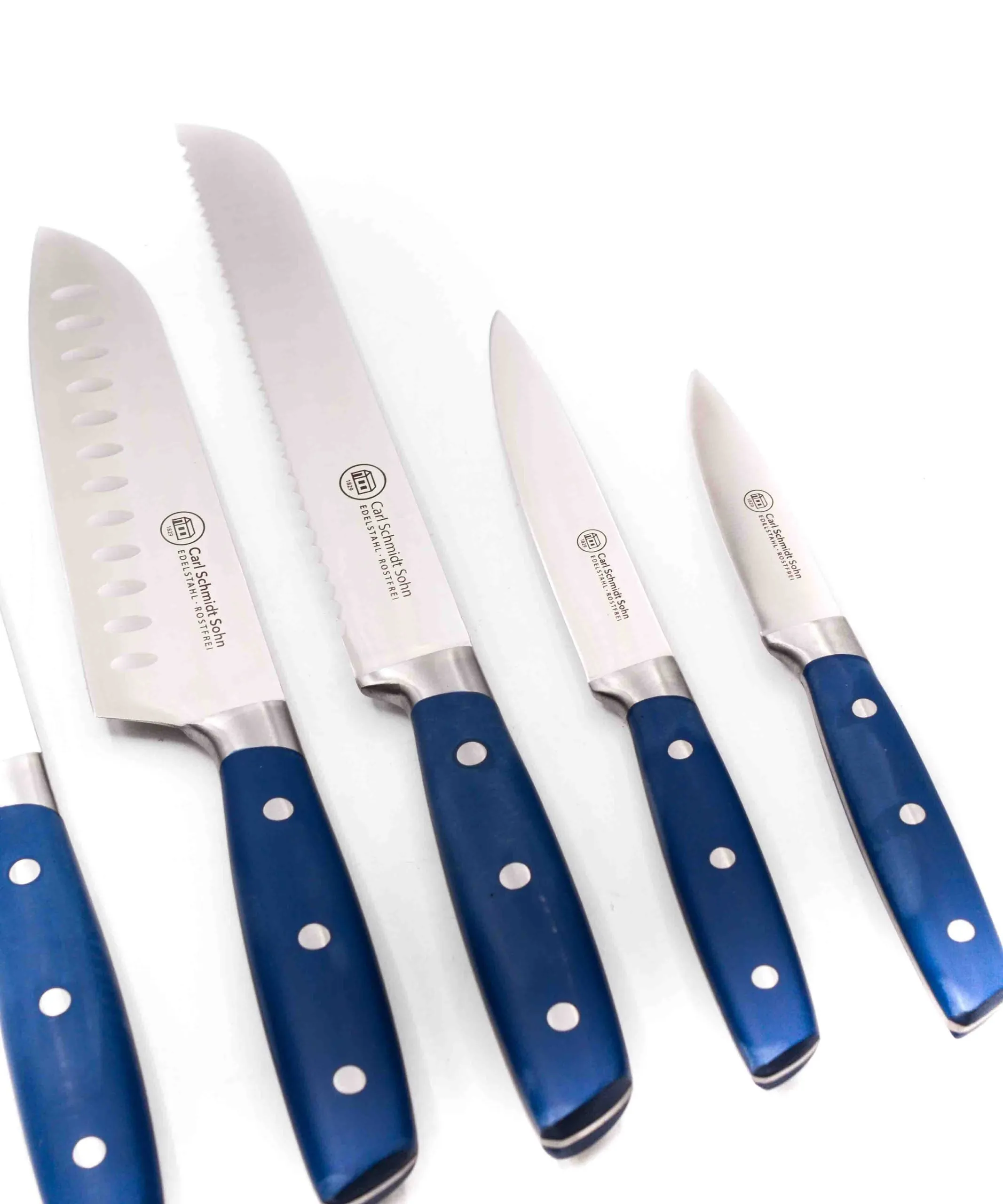Il set comprende: -ceppo CS -CS Pane 20cm -CS Trinciante 20cm -CS Santoku 18cm -CS Utility 15cm -CS Spelucchino 10cm