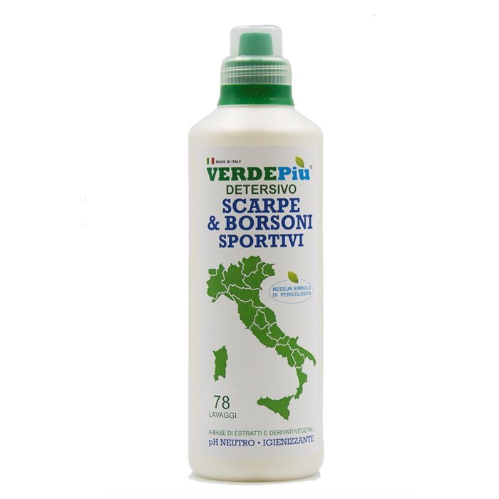 Detergente liquido ecologico per lavaggio a mano e in lavatrice di scarpe e borsoni sportivi a marchio Verdepiù