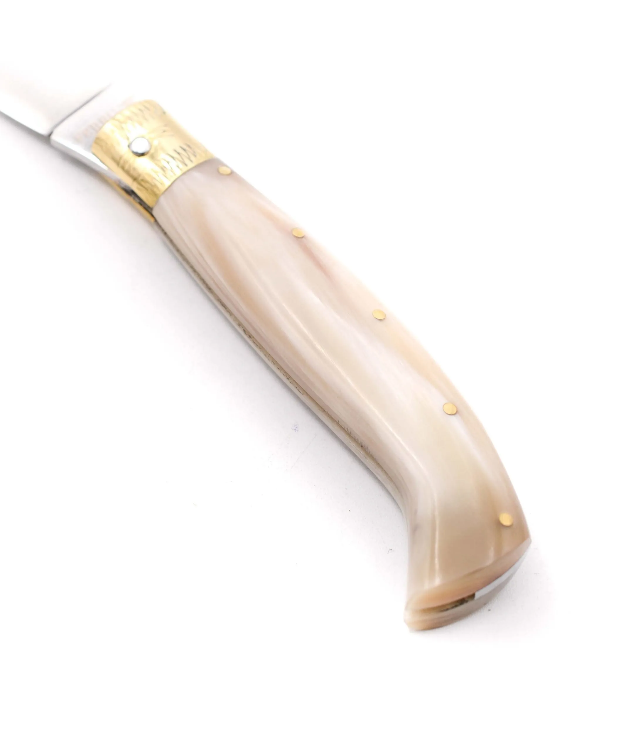Tutte le lame dei coltelli sono in acciaio INOX e i manici in corno bovino