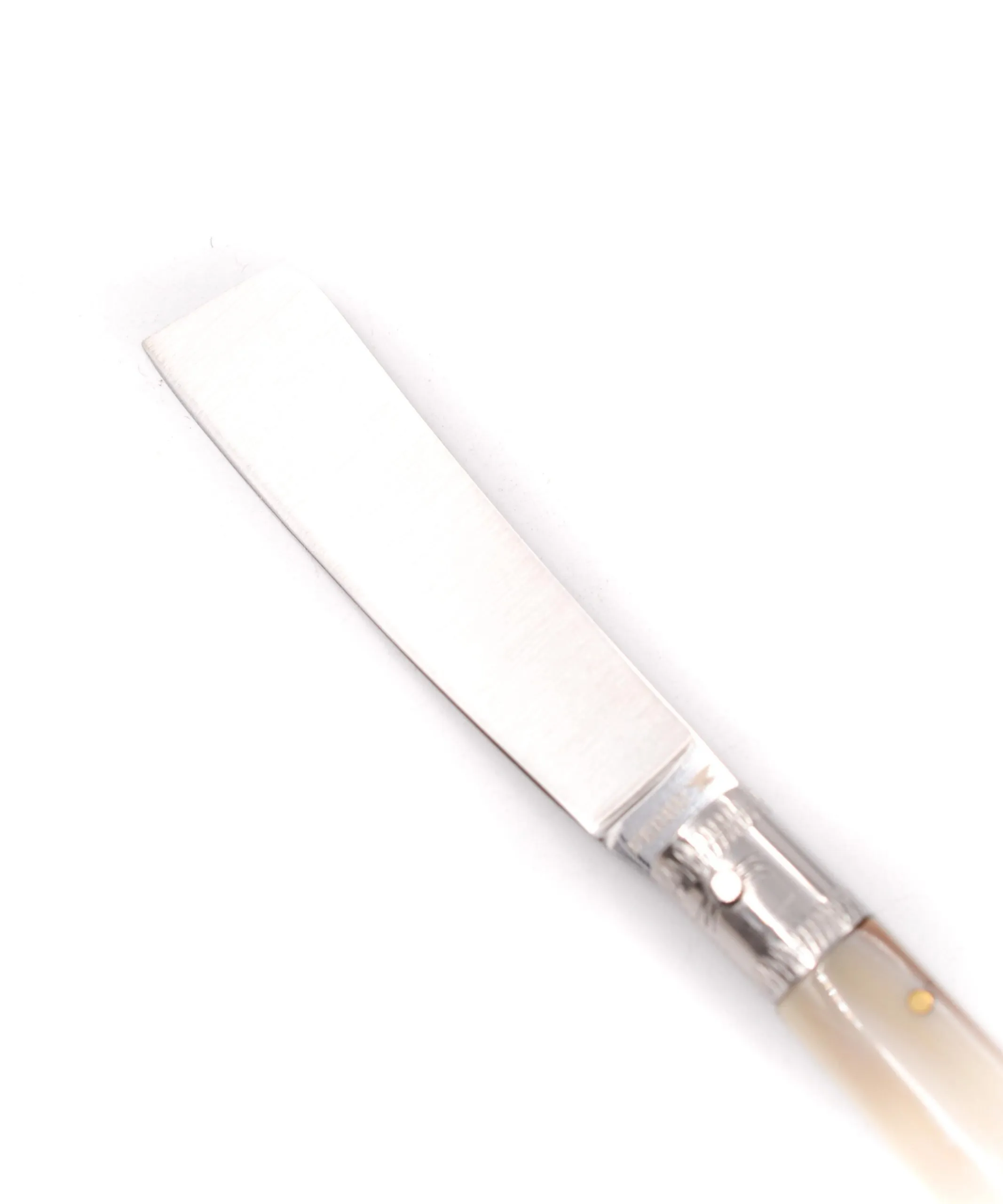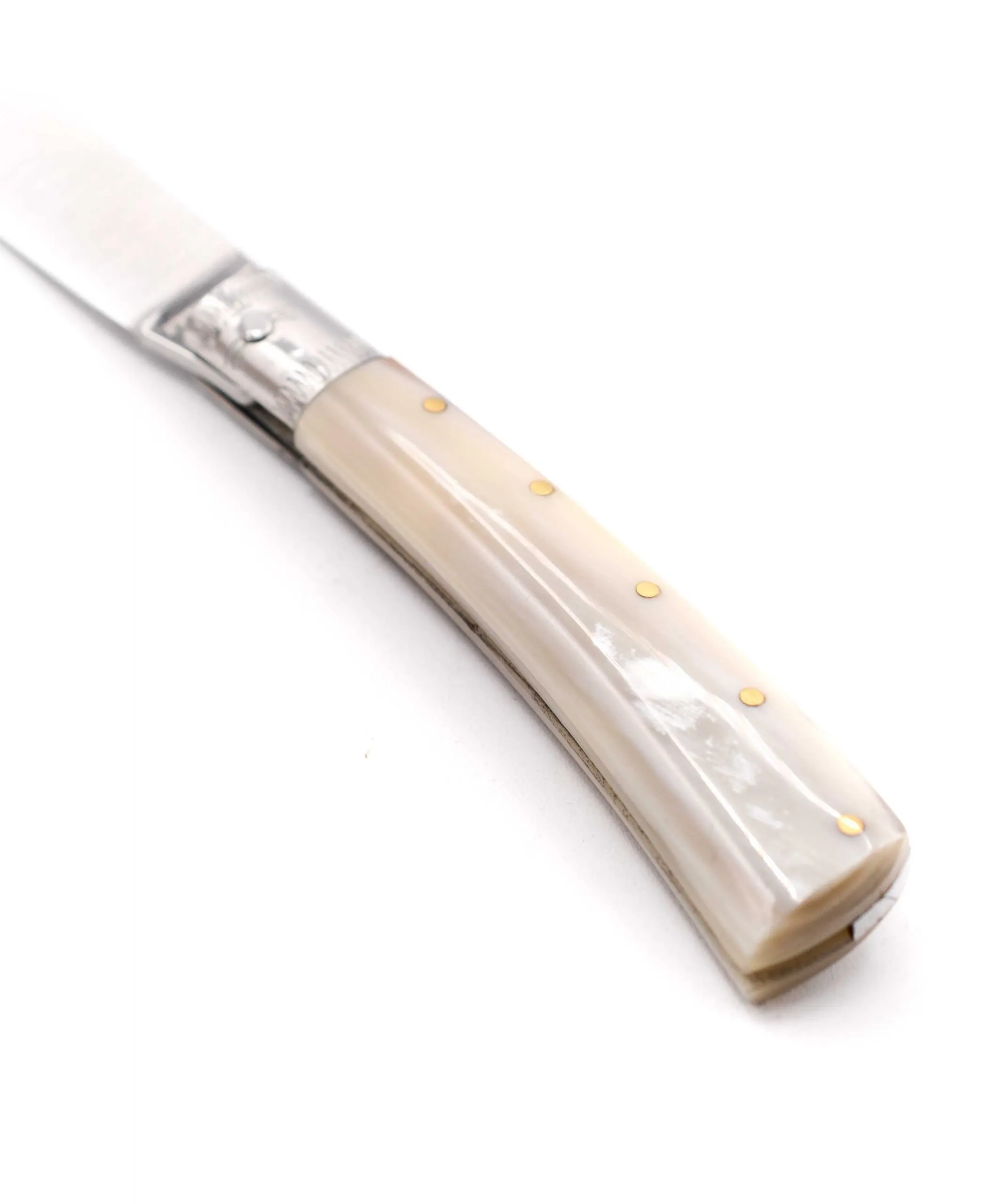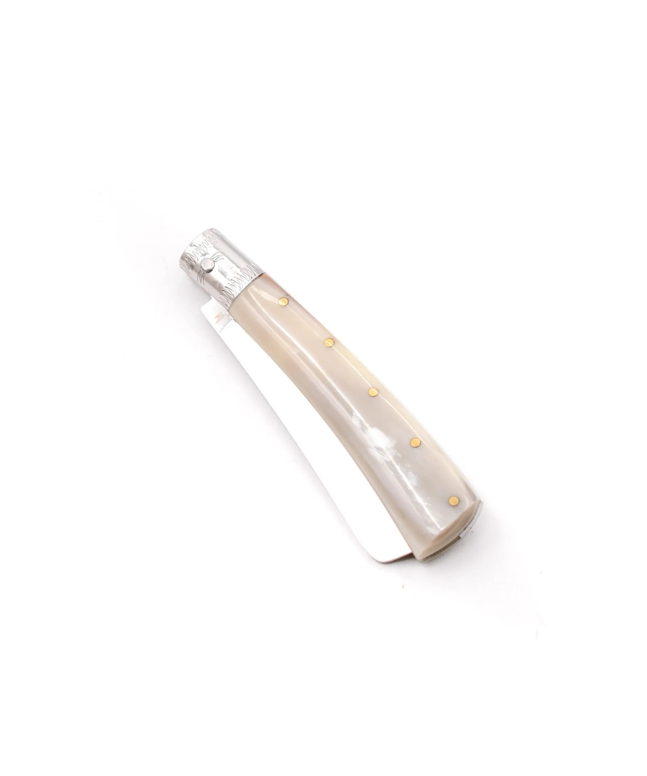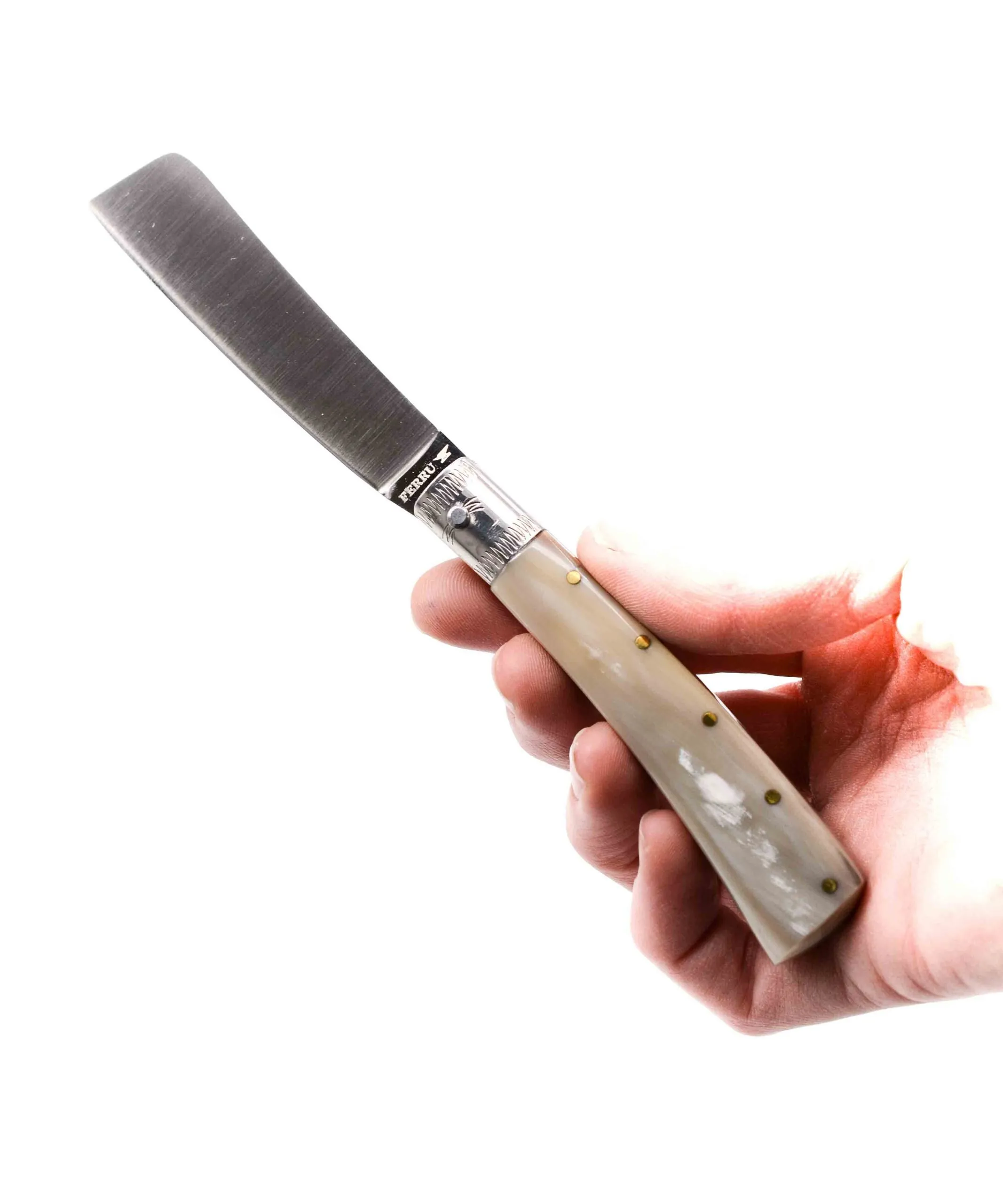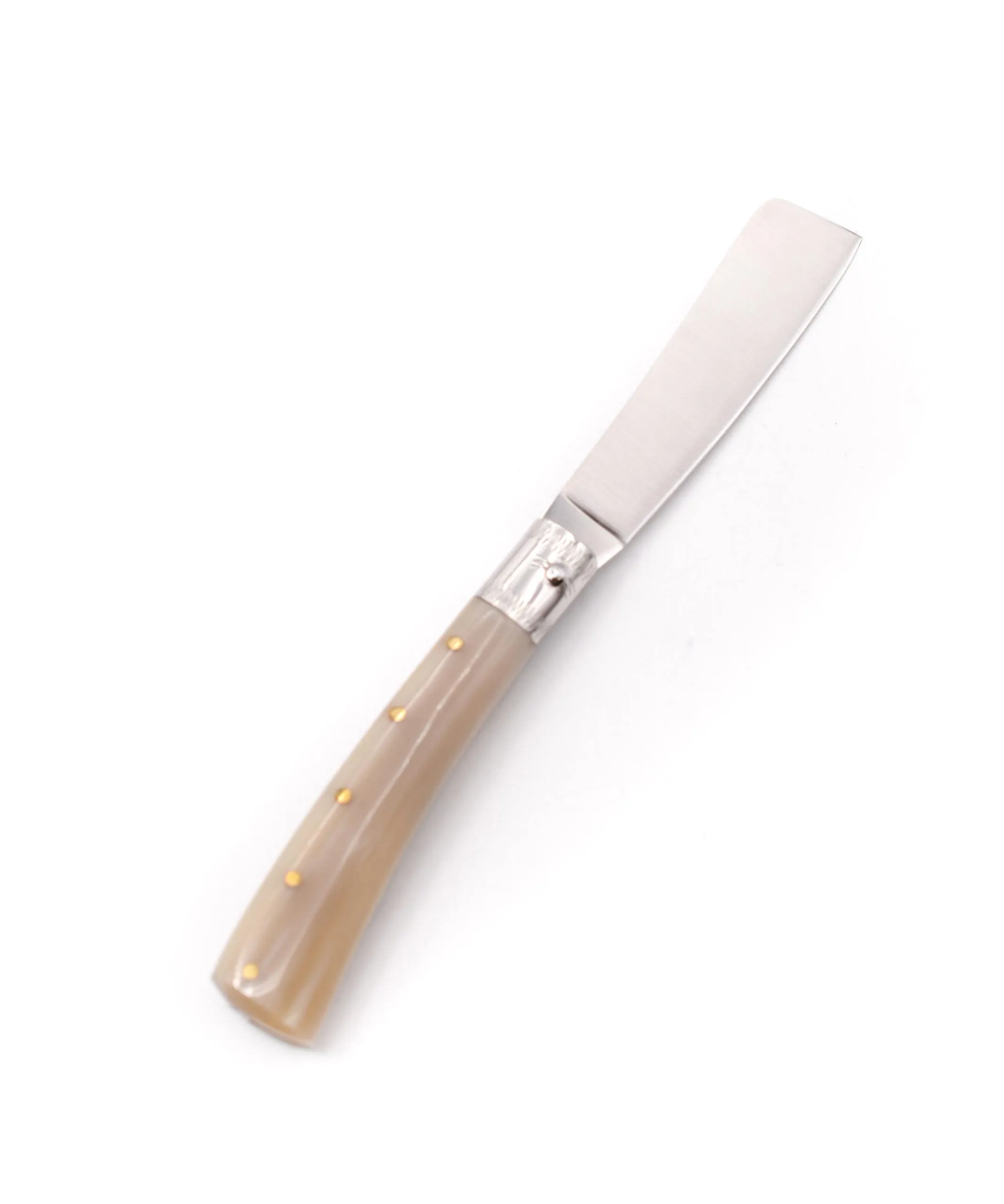 Tutte le lame dei coltelli sono in acciaio INOX e i manici in corno bovino