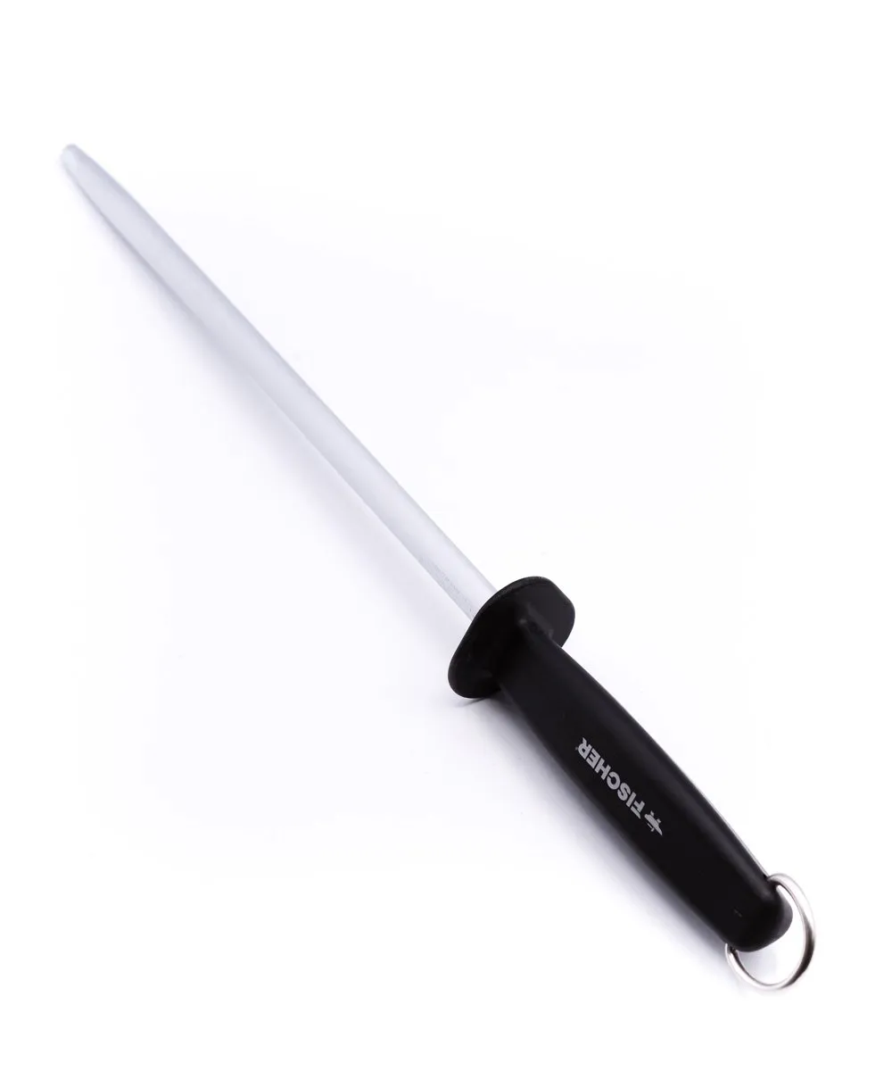 Fischer Acciaino Tondo 30cm è un modello in lega acciaio di alta qualità, viene scelto da macellai e professionisti per la sua grana fine e precisa