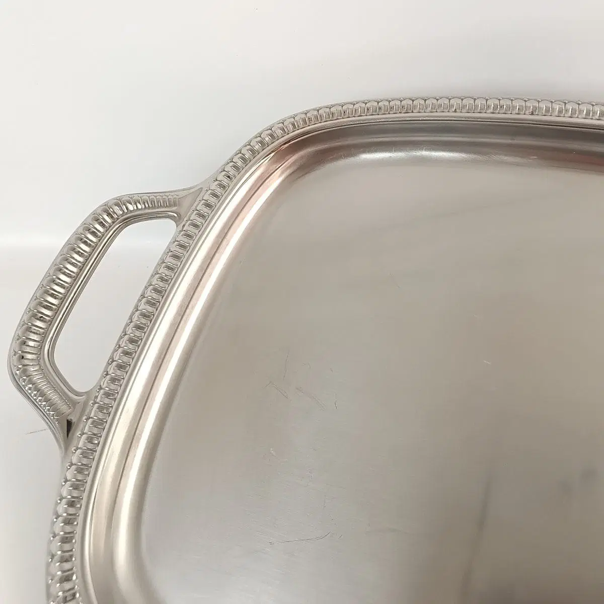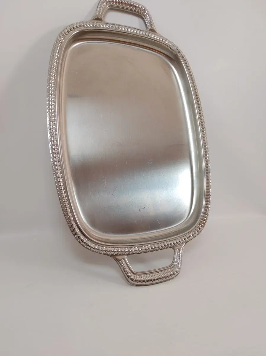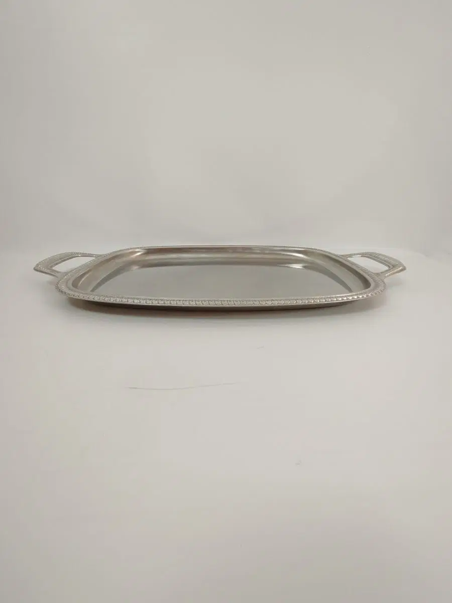 Aggiungi un tocco di design italiano alla tua casa con questo grande vassoio Alfra Alessi, autentico oggetto vintage realizzato in acciaio inox 18/10. Prodotto da Alfra Alessi (ALessi FRAtelli), questo vassoio vintage italiano si distingue per le sue linee eleganti, i bordi lavorati finemente e i pratici manici laterali, ideali per servire con stile o come elemento decorativo.