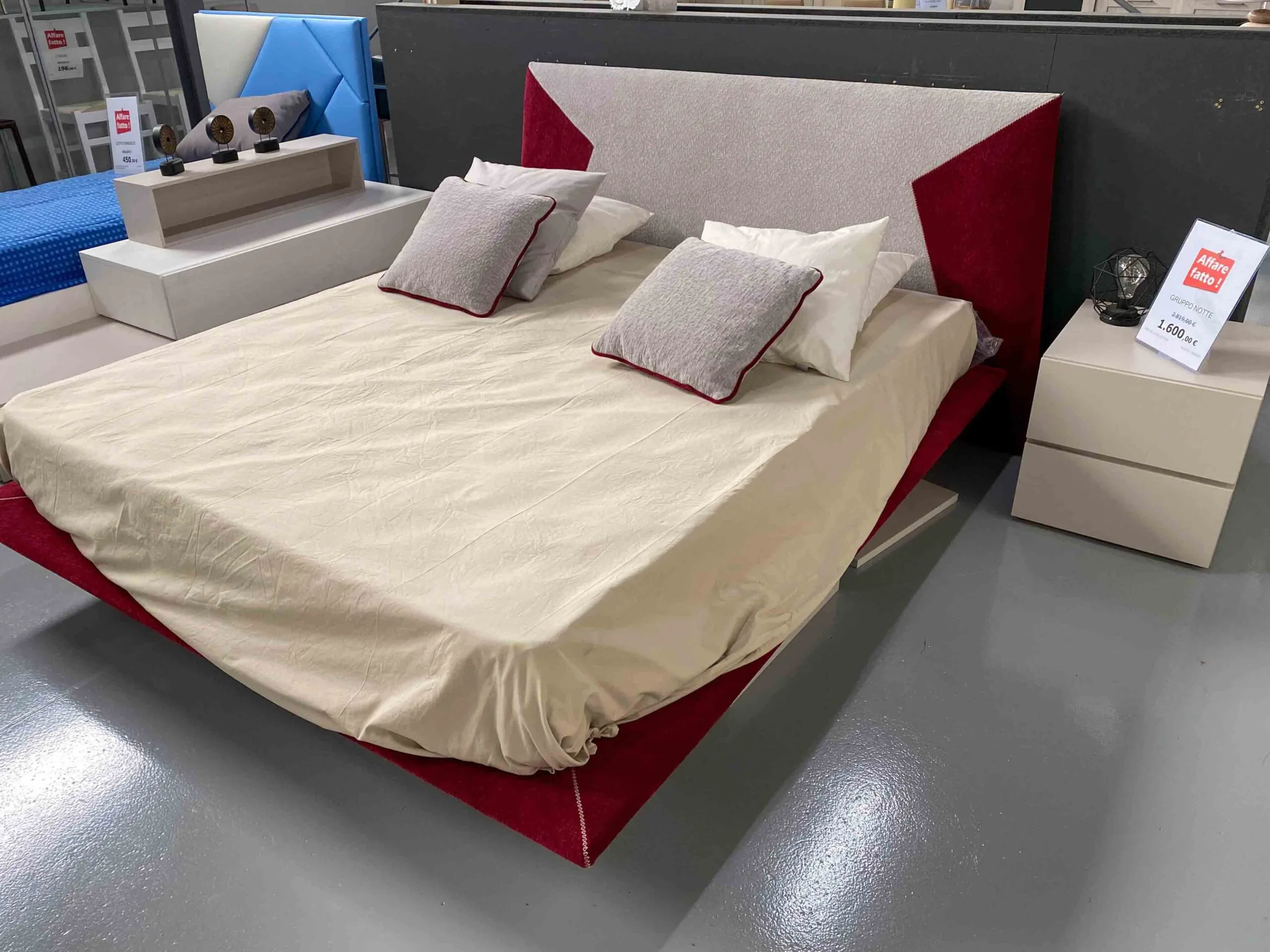 gruppo notte con letto imbottito samoa + gruppo comò e comodini SANTA LUCIA