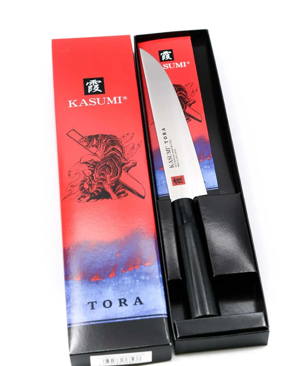 La serie TORA è una linea della Kasumi, in acciaio DSR1K6 che ha la particolarità di essere molto resistente e perfettamente bilanciato sono perfetti per chi entra per la prima volta nel mondo dei coltelli Giapponesi.