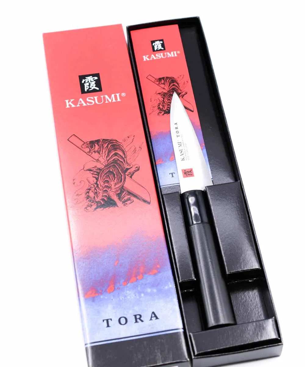 La serie TORA è una linea della Kasumi, in acciaio DSR1K6 che ha la particolarità di essere molto resistente e perfettamente bilanciato sono perfetti per chi entra per la prima volta nel mondo dei coltelli Giapponesi.