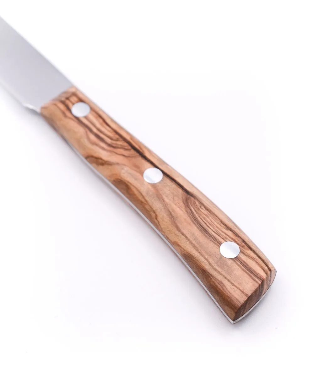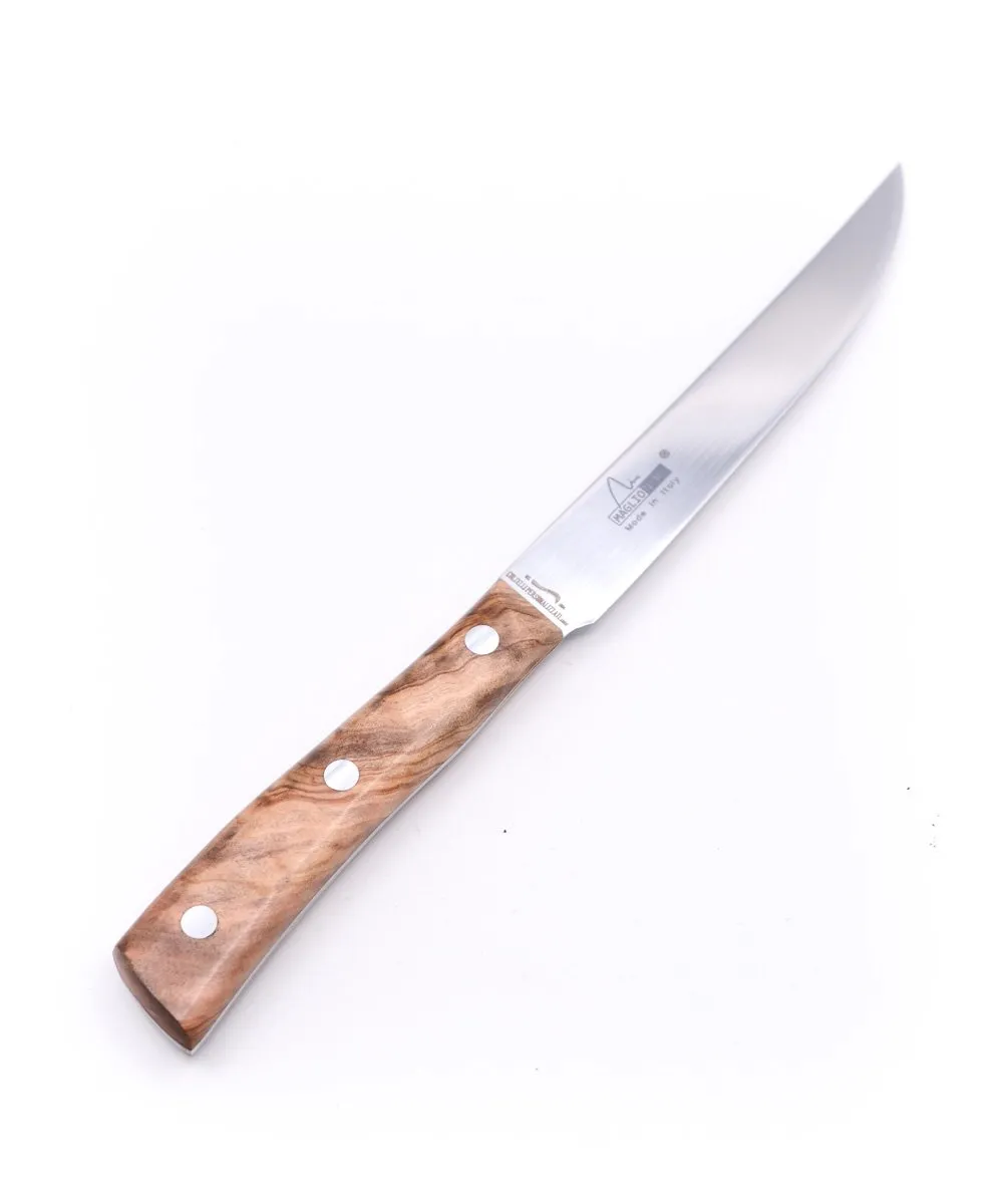 Il manico in ulivo rende ogni coltello Maglio Nero unico, le venature, scelte con cura, sono sempre diverse proprio per la naturalità del prodotto.