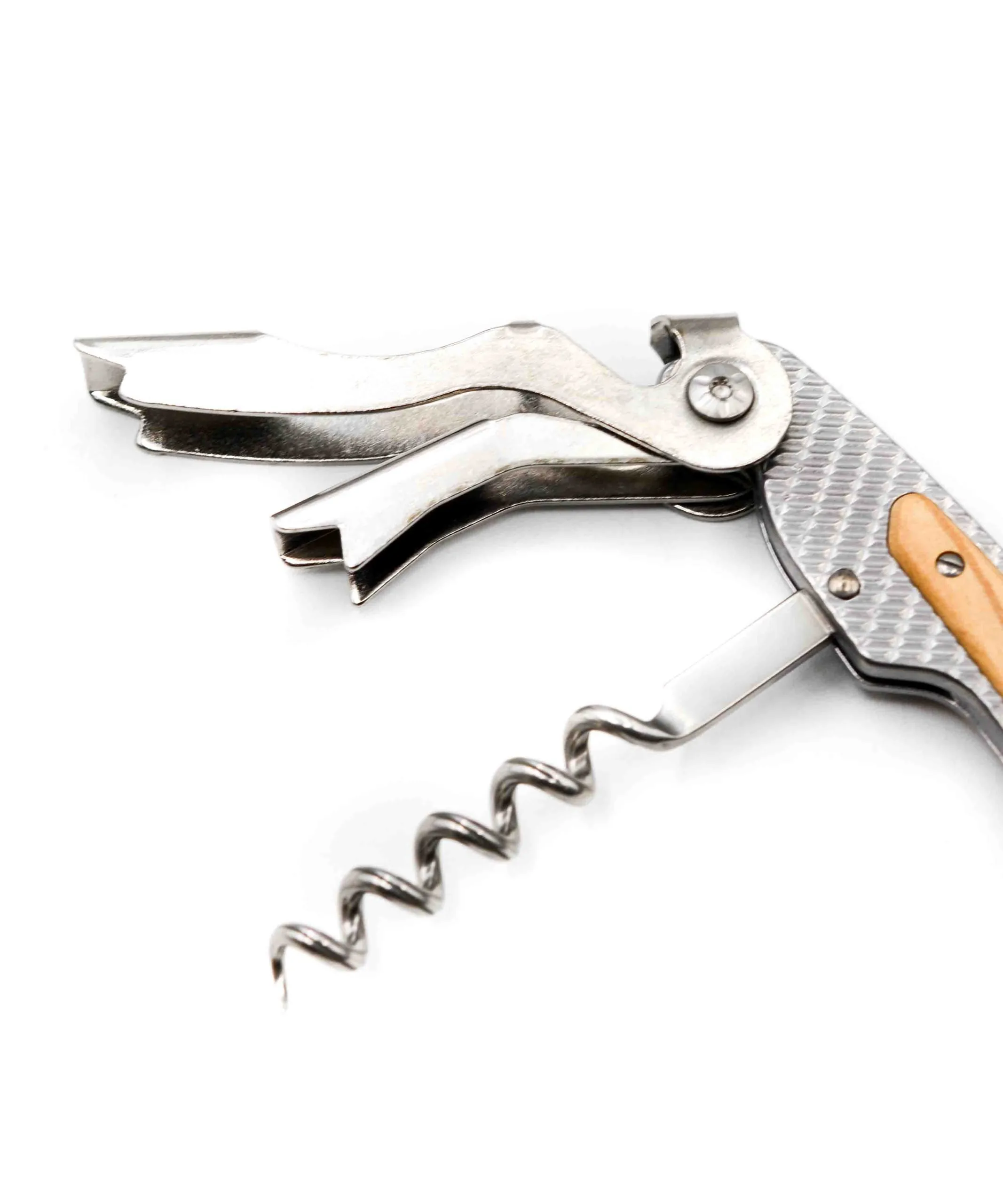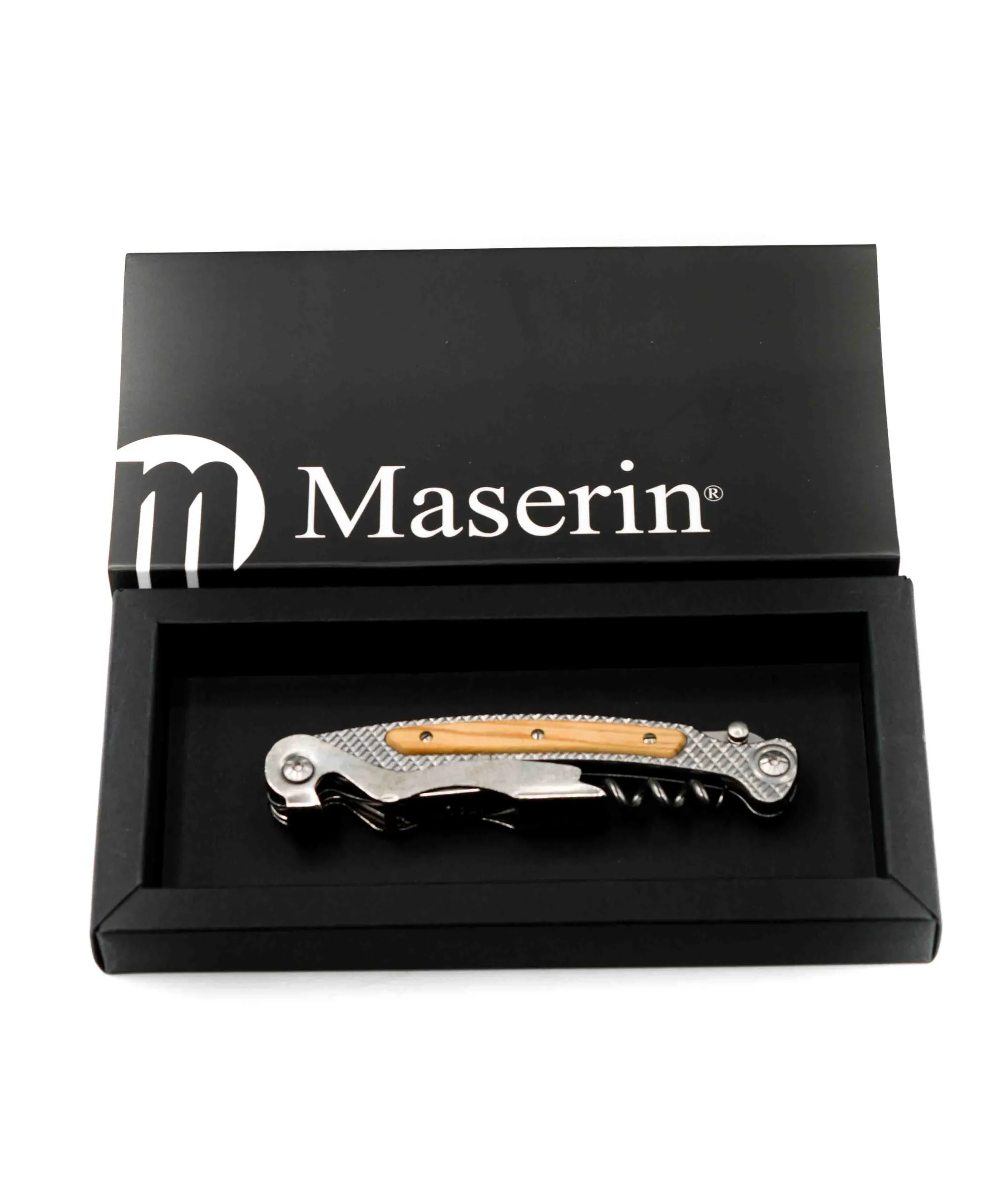 Maserin Cavatappi Ulivo è un modello interamente in acciaio inox con una particolare lavorazione che lo rende molto elegante.