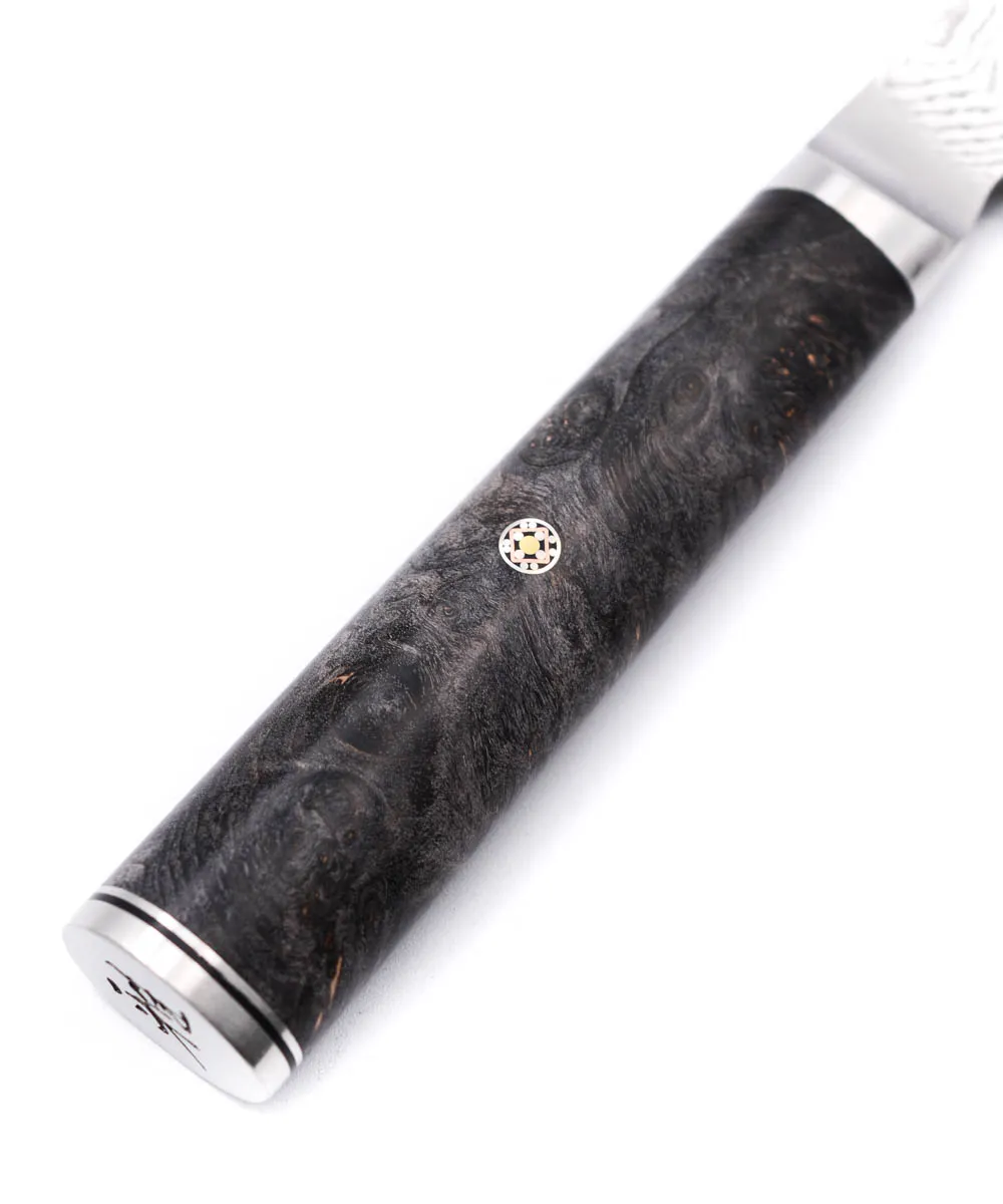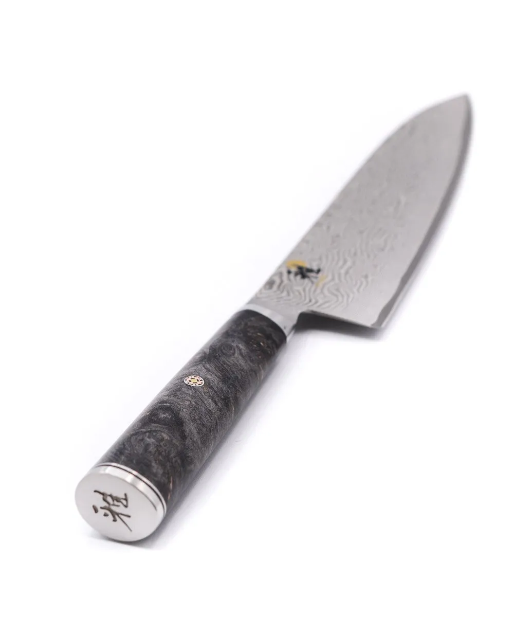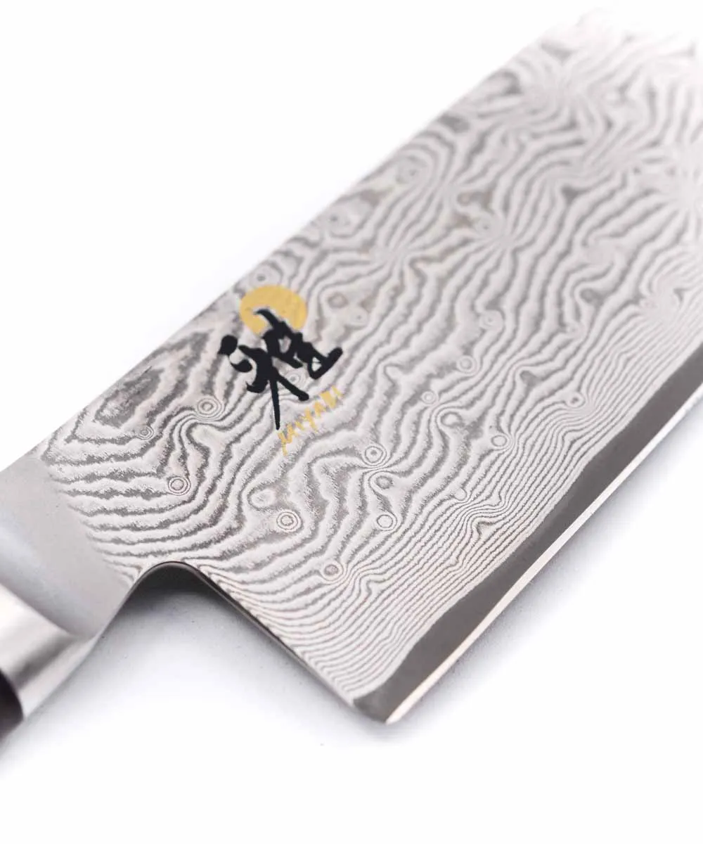La serie Miyabi 5000MCD-67 utilizza acciaio MC66 con un damasco a 132 strati con tempra sotto 0, il manico è in radica di acero con pin a mosaico lavorato artigianalmente per avere un bilanciamento perfetto su ogni singolo coltello