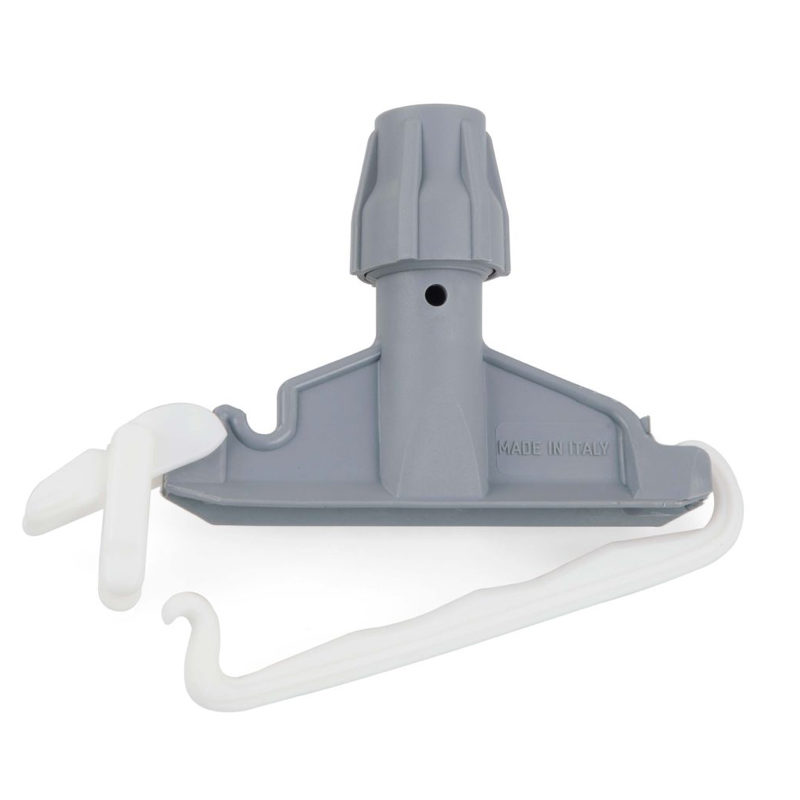 La pinza per mop della Filmop è da 400 gr e va agganciata alla banda superiore di mop non dotati di attacco a vite. Utilissima nel caso in cui il mop debba essere impiegato nella pulizia in ambienti collettivi come mense, ospedali, uffici e case di cura. La ghiera universale ne consente l’utilizzo con qualsiasi manico che abbia un diametro dai 20 ai 24 mm.
