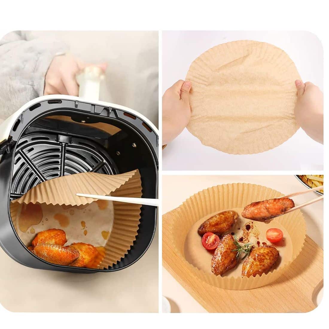 MATERIALE: La cartaforno per friggitrice ad aria è composta solo da cellulosa vergine di primissima qualità. I pirottini di carta da forno riutilizzabile sono sottili fogli di carta trattati con sostanze antiaderenti per rendere la superficie resistente all'aderenza degli alimenti durante la cottura.