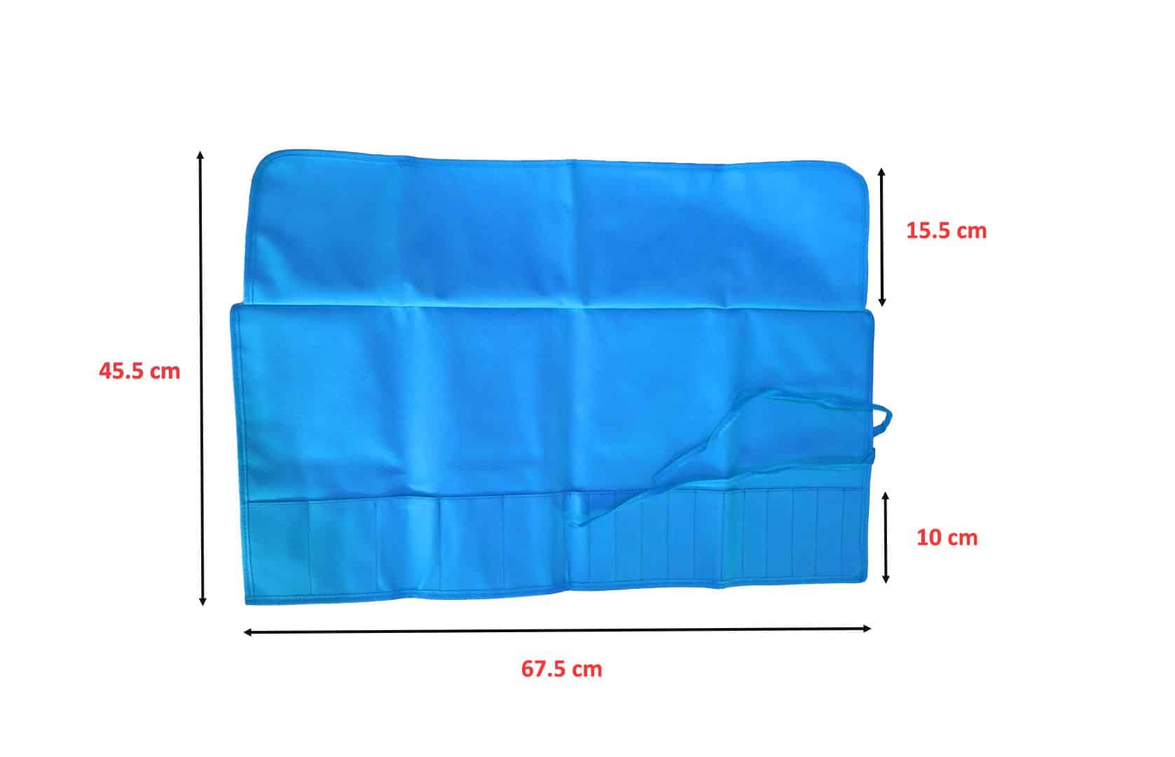 DIMENSIONI: Le dimensioni aperte dell'astuccio pennelli make up sono di 45.5×67.5 cm. Sono presenti 17 sacche piccole dove riporre gli accessori make up, 12 scomparti sono hanno una larghezza di 3 cm, e 5 sono da 6.5 cm, l'altezza di tutte le tasche è da 10 cm. Il porta pennelli da viaggio ha una parte superiore di 15.5 cm che copre le punte degli strumenti in modo da proteggerli durante il trasporto.