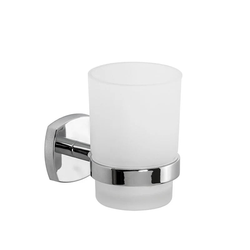• Porta Spazzolini in Acciaio Cromato, Vetro satinato e leghe metalliche