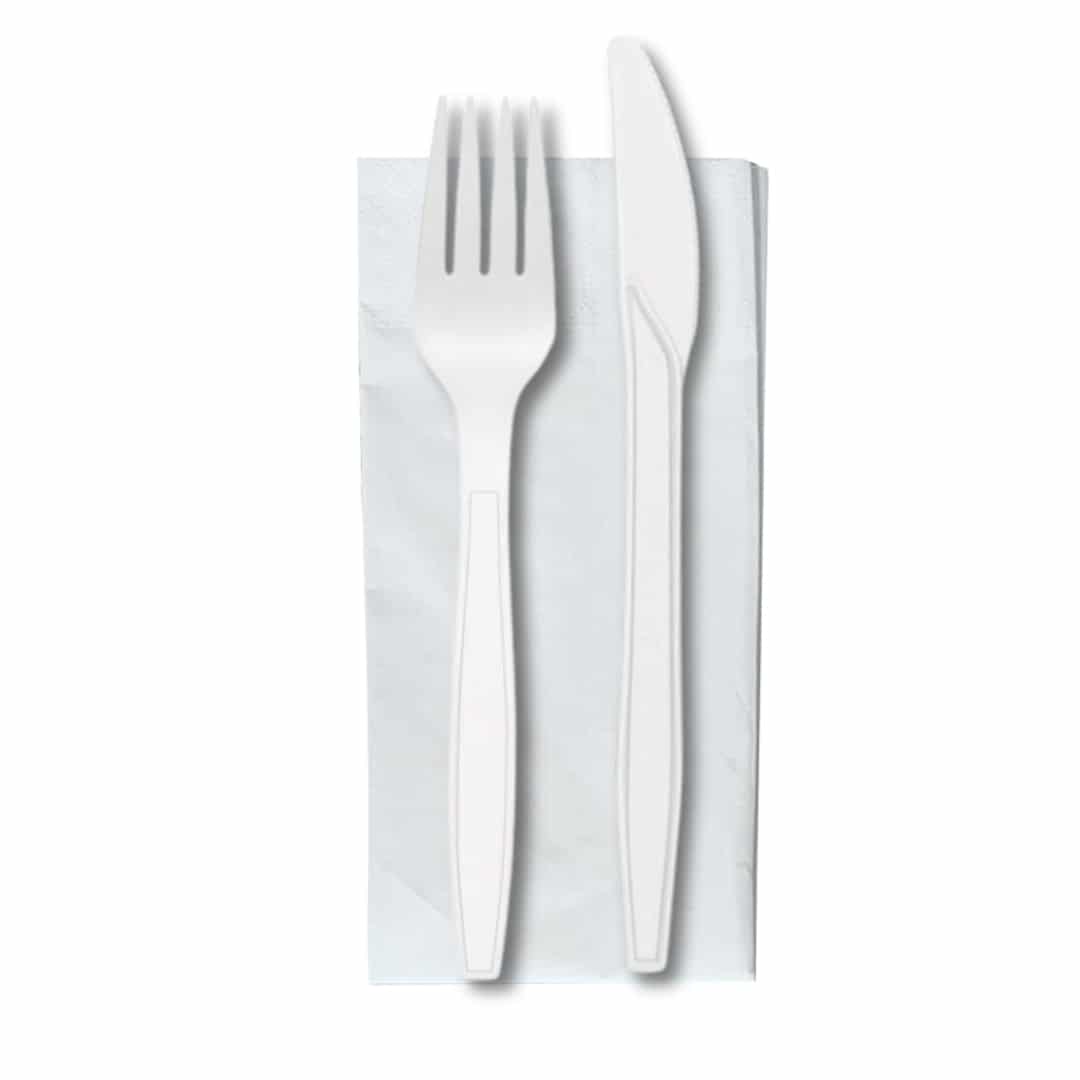 POSATE BIS BIANCHE RIUTILIZZABILI FORCHETTA+COLTELLO+TOV. CONFEZIONI DA 100PZ