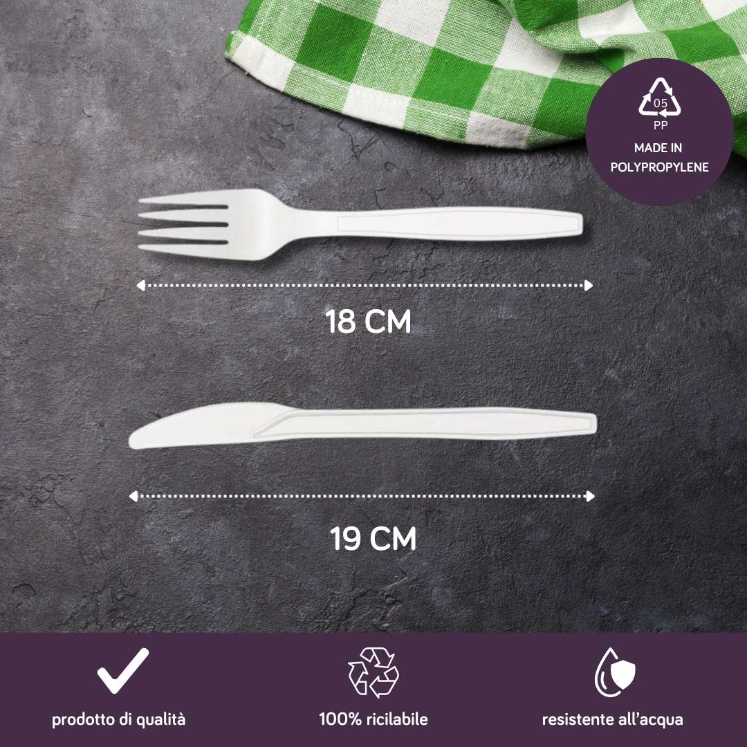 • Design durevole e resistente: Ogni coltello e forchetta è progettato per resistere agli usi ripetuti senza compromettere la sua integrità strutturale o estetica. La plastica bianca di alta qualità offre una superficie liscia e brillante che si mantiene bella nel tempo.