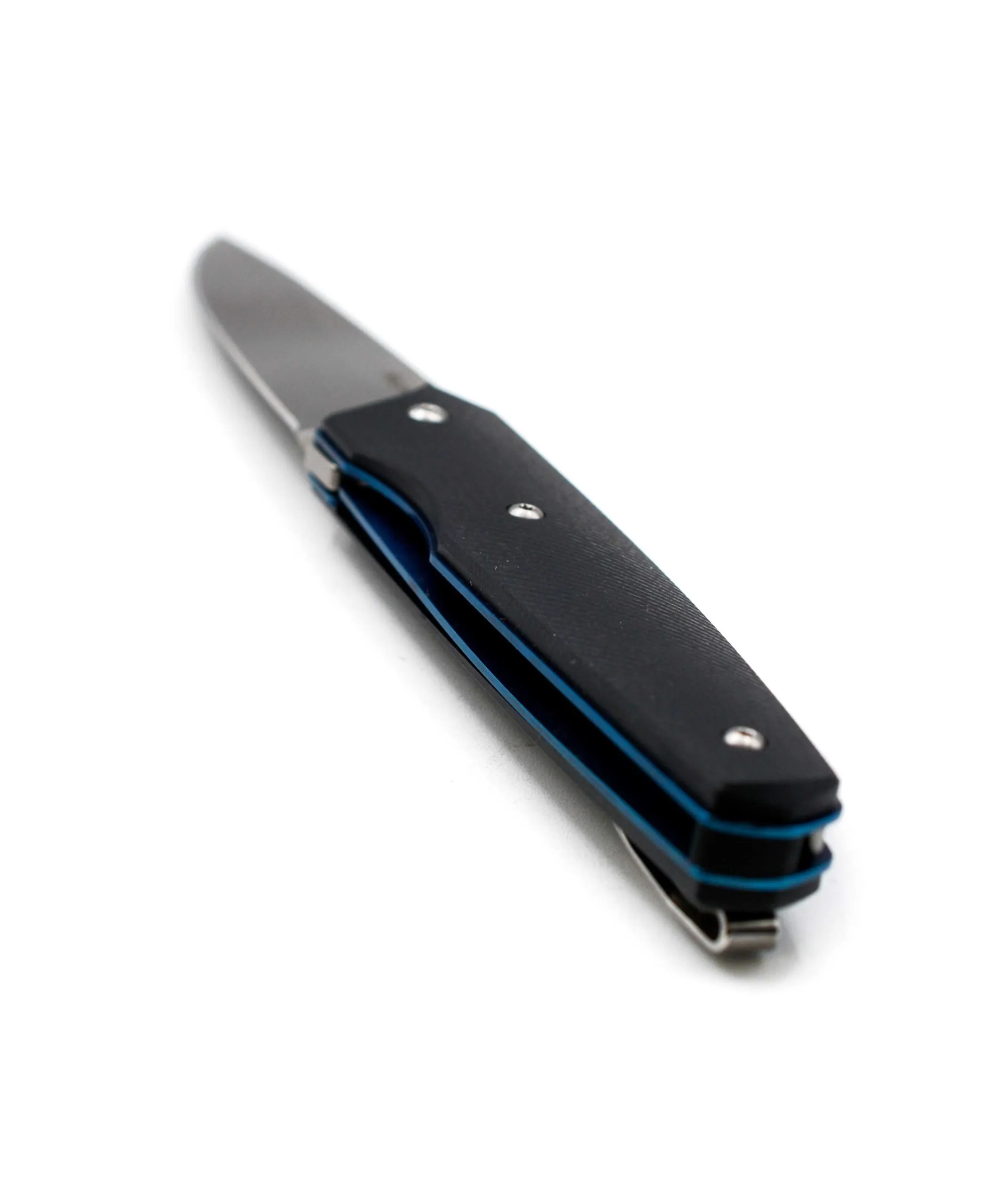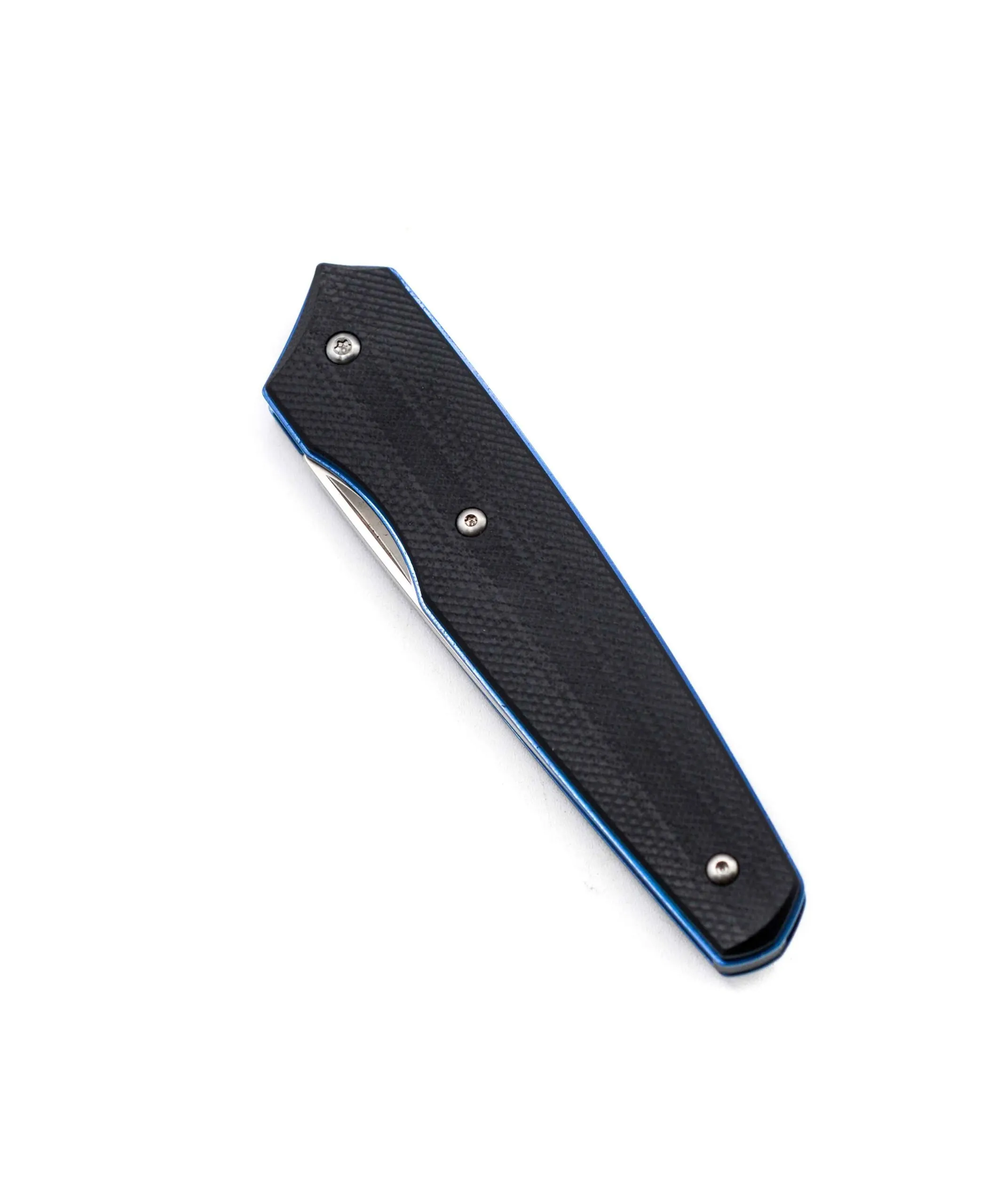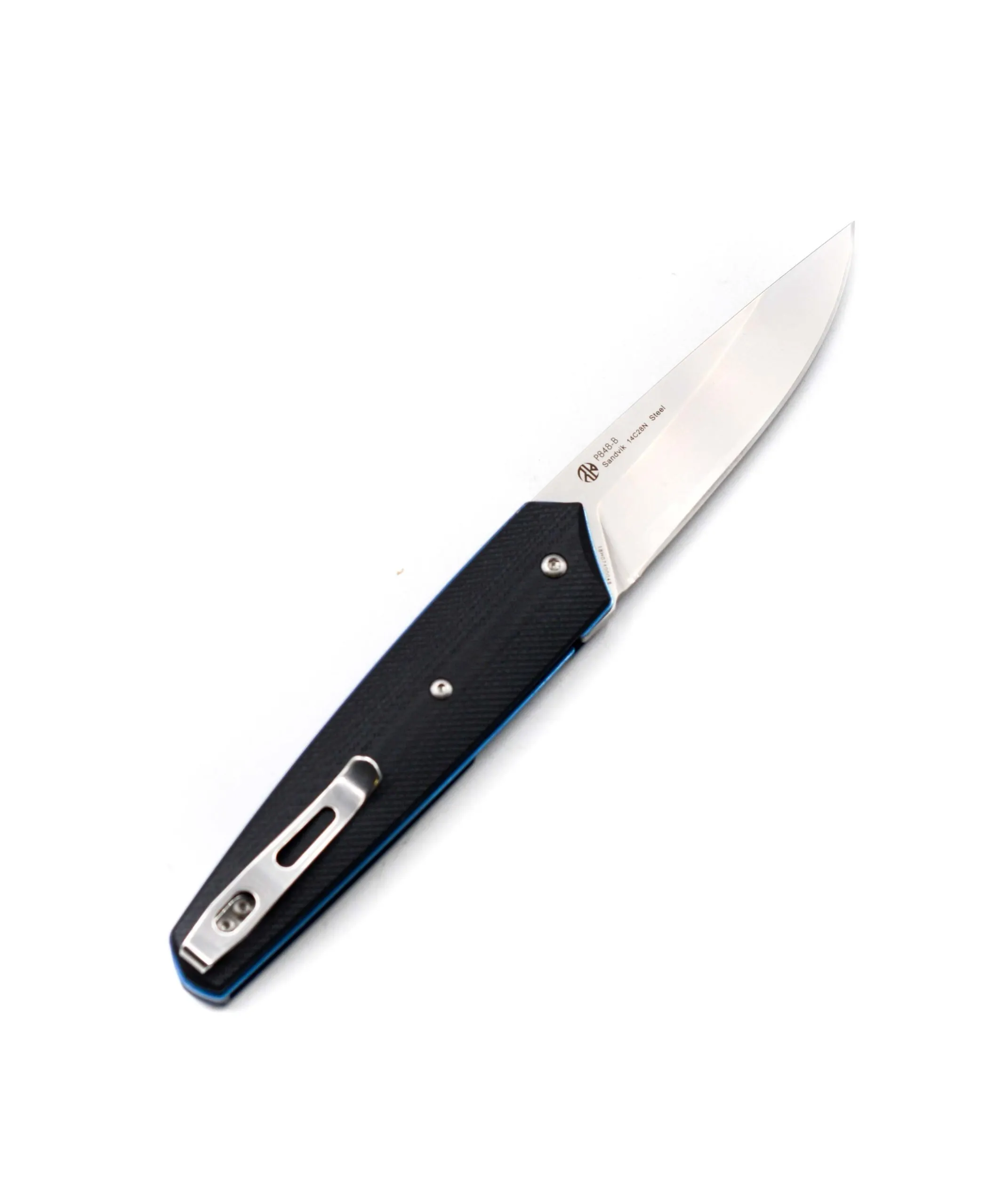 Ruike P848 Black modello in acciaio inox, con manico nero in G10 e una lamella di alluminio anodizzato blu che lo rende molto elegante