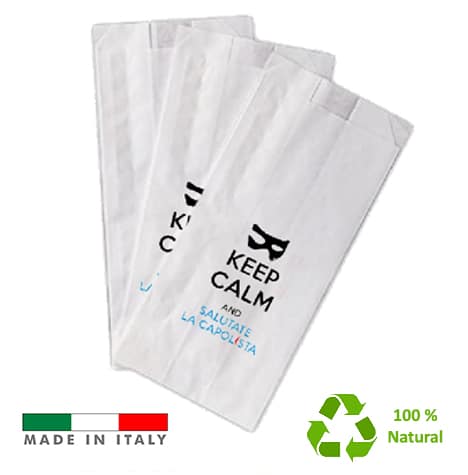 KEEP CALM and SALUTATE LA CAPOLISTA con i nostri sacchetti bianchi in carta kraft 15×30 cm! Questa confezione da cento sacchetti ti offre una soluzione versatile per il confezionamento di cornetti, pizze, tabacchi e molto altro. Realizzati con carta kraft resistente, i nostri sacchetti mantengono i tuoi prodotti freschi e presentabili. Aggiungi un tocco di stile e praticità al tuo business con i nostri sacchetti di alta qualità. Acquista oggi e offri un'esperienza di confezionamento impeccabile ai tuoi clienti!