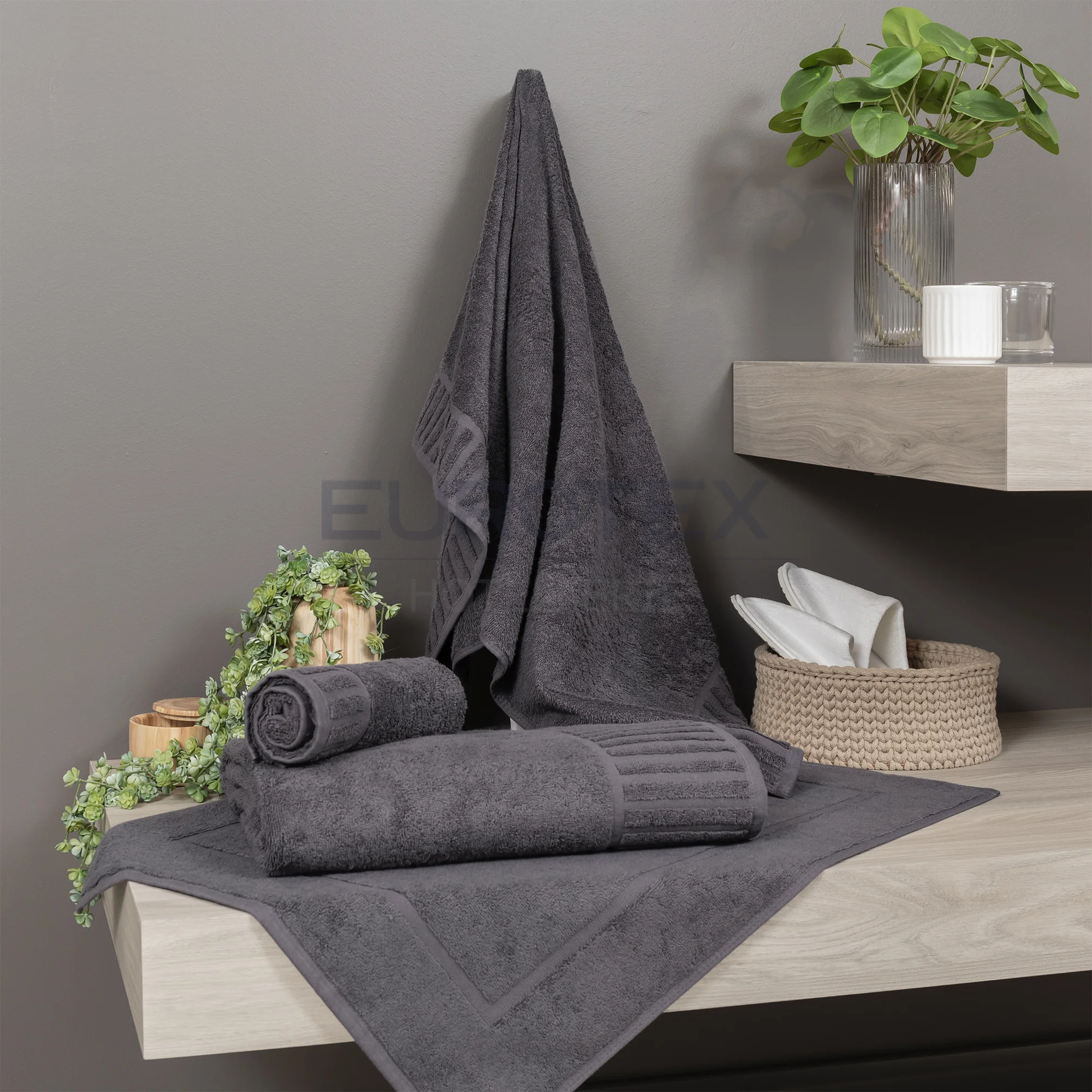 Salvietta per alberghi prodotti in spugna extra soffice in cotone 100% dalla pesantezza superior gr. 480 al mq colore antracite con un disegno “a pianoforte” sui due lati corti (testa/piede). Disegno nuovo e moderno, ideale per differenziarsi dagli hotel che usano tipicamente la classica lavorazione 3 righe.