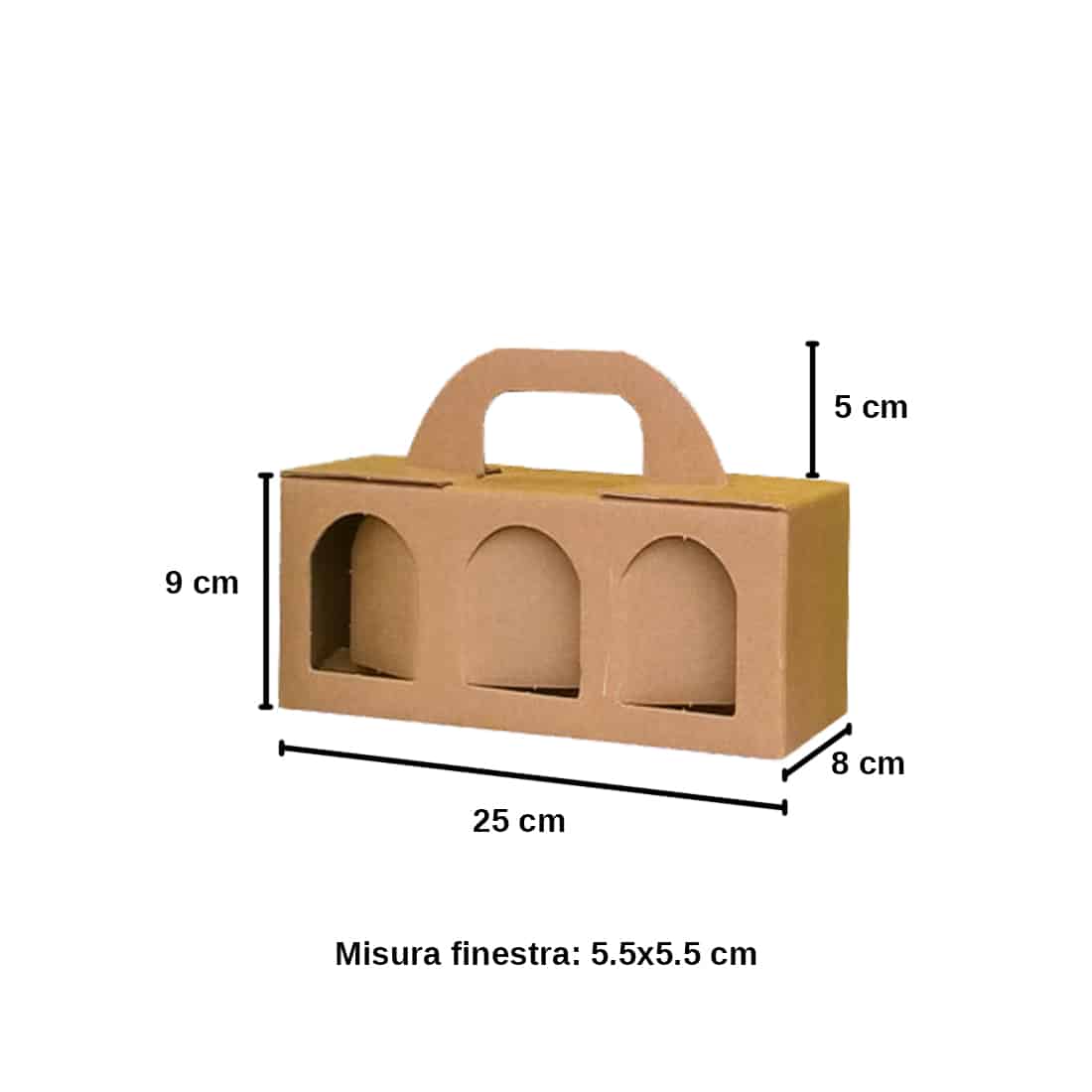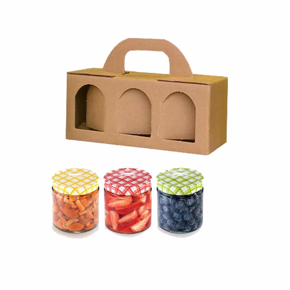 Con questa scatola in cartone resistente e dotata di maniglia, puoi trasportare comodamente i tuoi vasetti di marmellata o miele. Disponibile con 2 o 3 fori per i contenitori, questa scatola porta vasetti è perfetta per il trasporto e la presentazione di prodotti artigianali fatti in casa. Scegli la tua variante preferita e rendi i tuoi regali ancora più speciali.