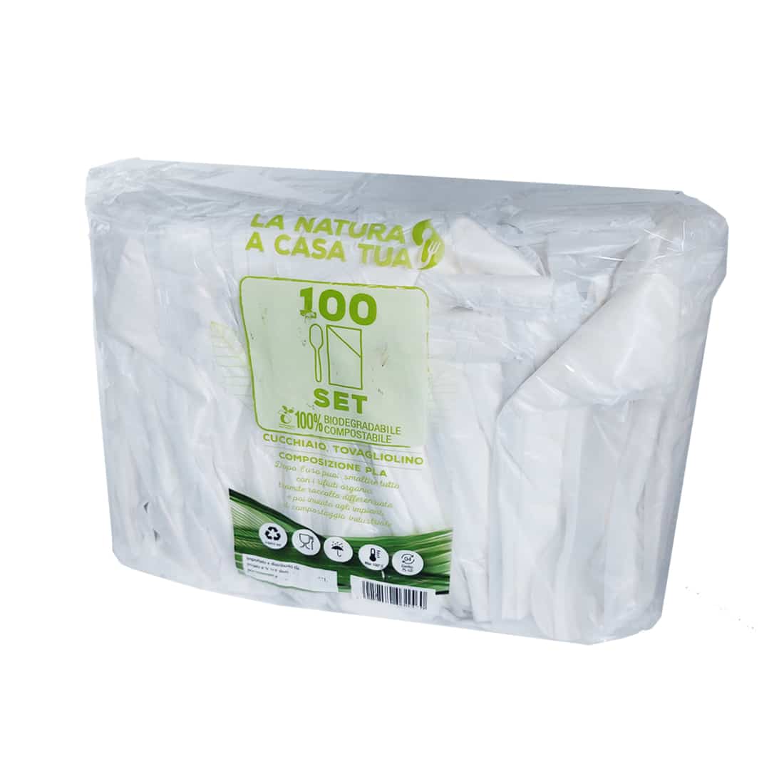Set posate Cucchiaio e tovagliolo 33×33 cm imbustati singolarmente 100 pezzi