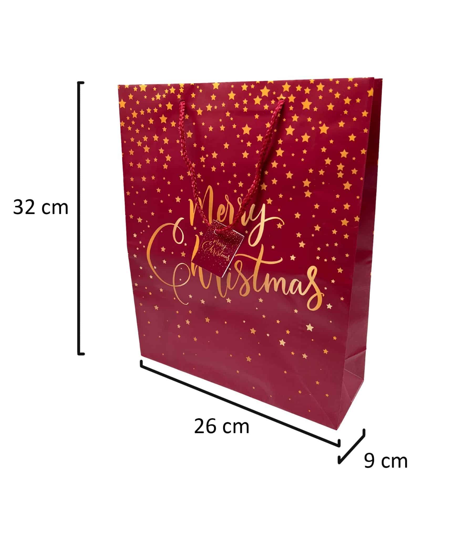 Preparati per le festività con le nostre shopper di carta natalizie e le buste con manico colorate a tema Natalizio. Questi eleganti sacchetti sono perfetti per confezionare i tuoi regali natalizi in modo speciale ed accattivante. La shopper di carta, con le sue dimensioni di 26+9×32 cm, offre ampio spazio per ospitare i tuoi regali di diverse dimensioni. La fantasia Natalizia stampata sulla shopper aggiungerà un tocco di festa e allegria. Le nostre buste natalizie con manico colorate sono disponibili in una confezione da 4 pezzi, ognuna con un design unico e vivace. Sono ideali per regali di diverse dimensioni e possono essere riutilizzate anche come sacchetti per eventi natalizi. Inoltre, i nostri sacchetti regalo sono realizzati con materiali di alta qualità per garantire la resistenza e la durabilità necessarie durante il trasporto. Scegli le nostre shopper di carta natalizie, le buste con manico colorate e i sacchetti regalo per impreziosire i tuoi doni e creare un’atmosfera festiva unica. Acquista oggi stesso e vivi un Natale davvero speciale!