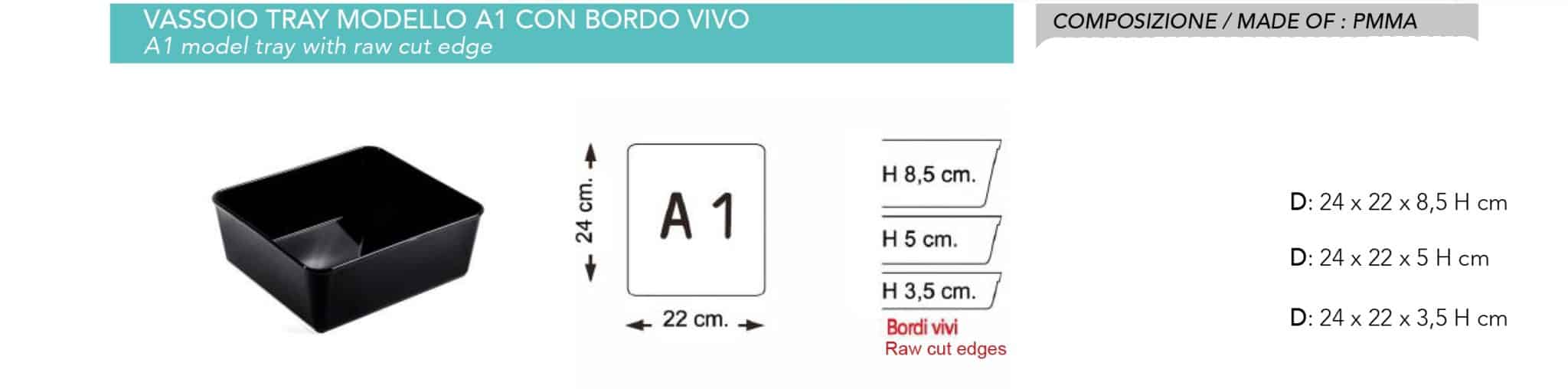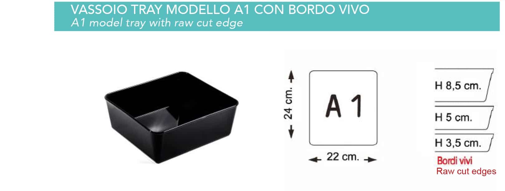 Le vaschette da banco macelleria sono 22×24 cm, disponibili in 3 altezze diverse 3.5 cm, 5 cm e 8.5 cm.
