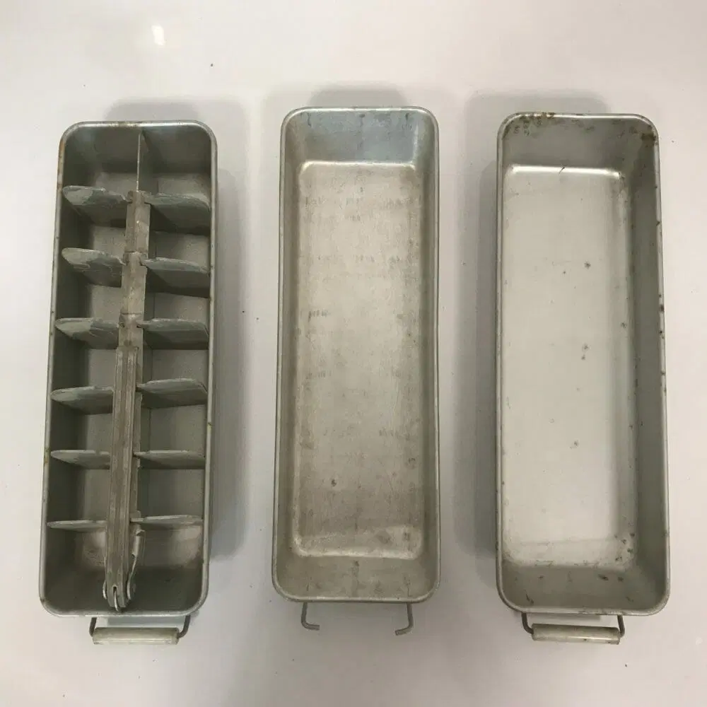 Tre vaschette in alluminio e un divisorio per i cubetti del ghiaccio con leva. Modello con 14 scomparti.