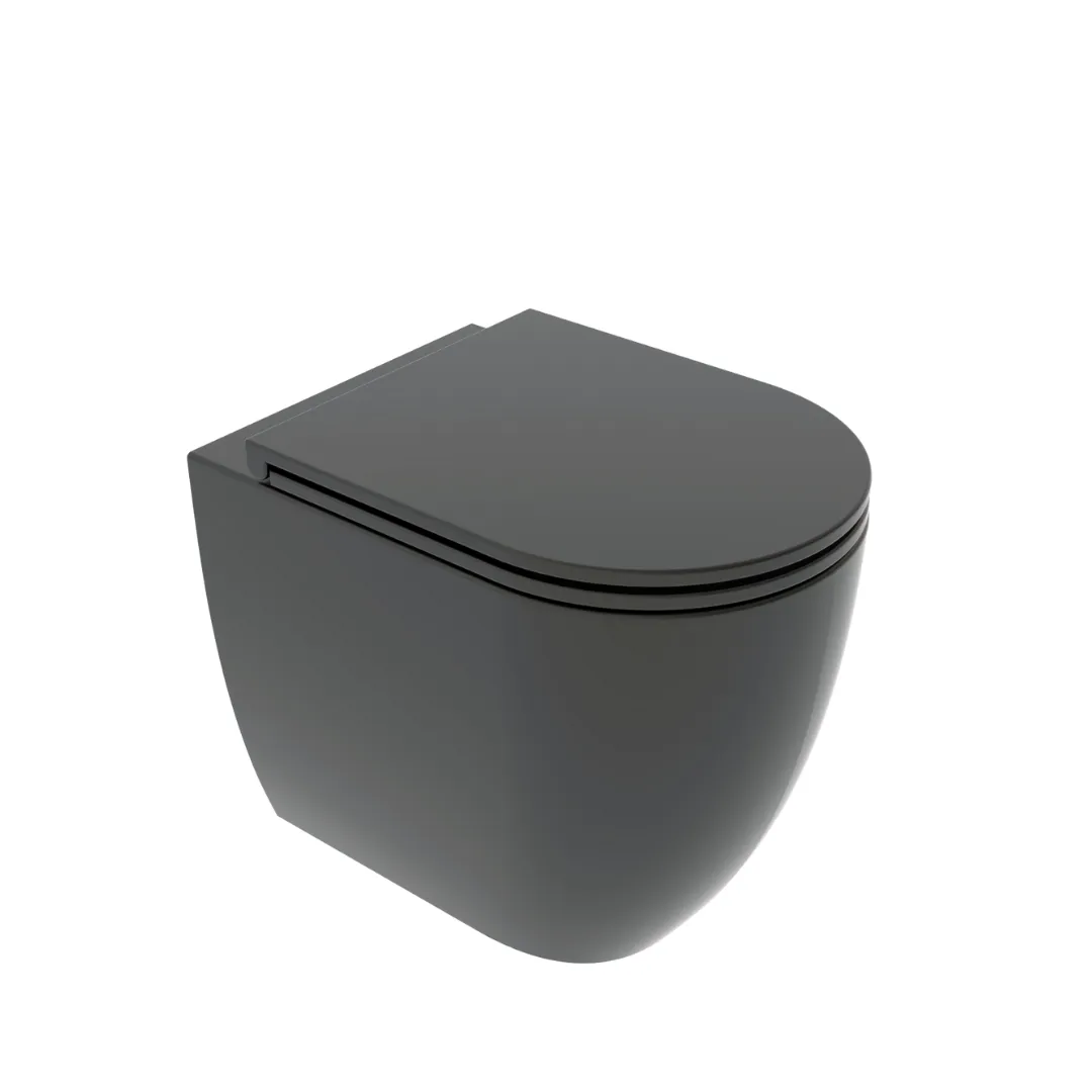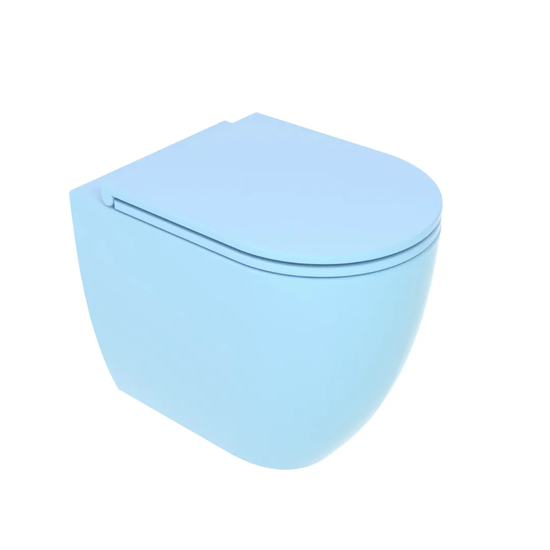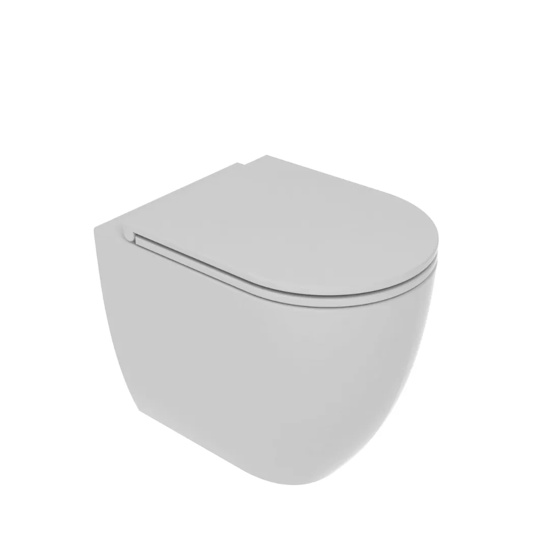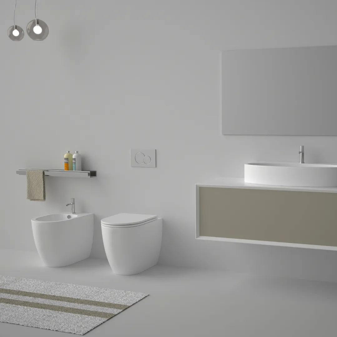 Vaso a terra senza brida con sistema di scarico Smart-Clean, scarico a parete, convertibile a pavimento con curva tecnica.